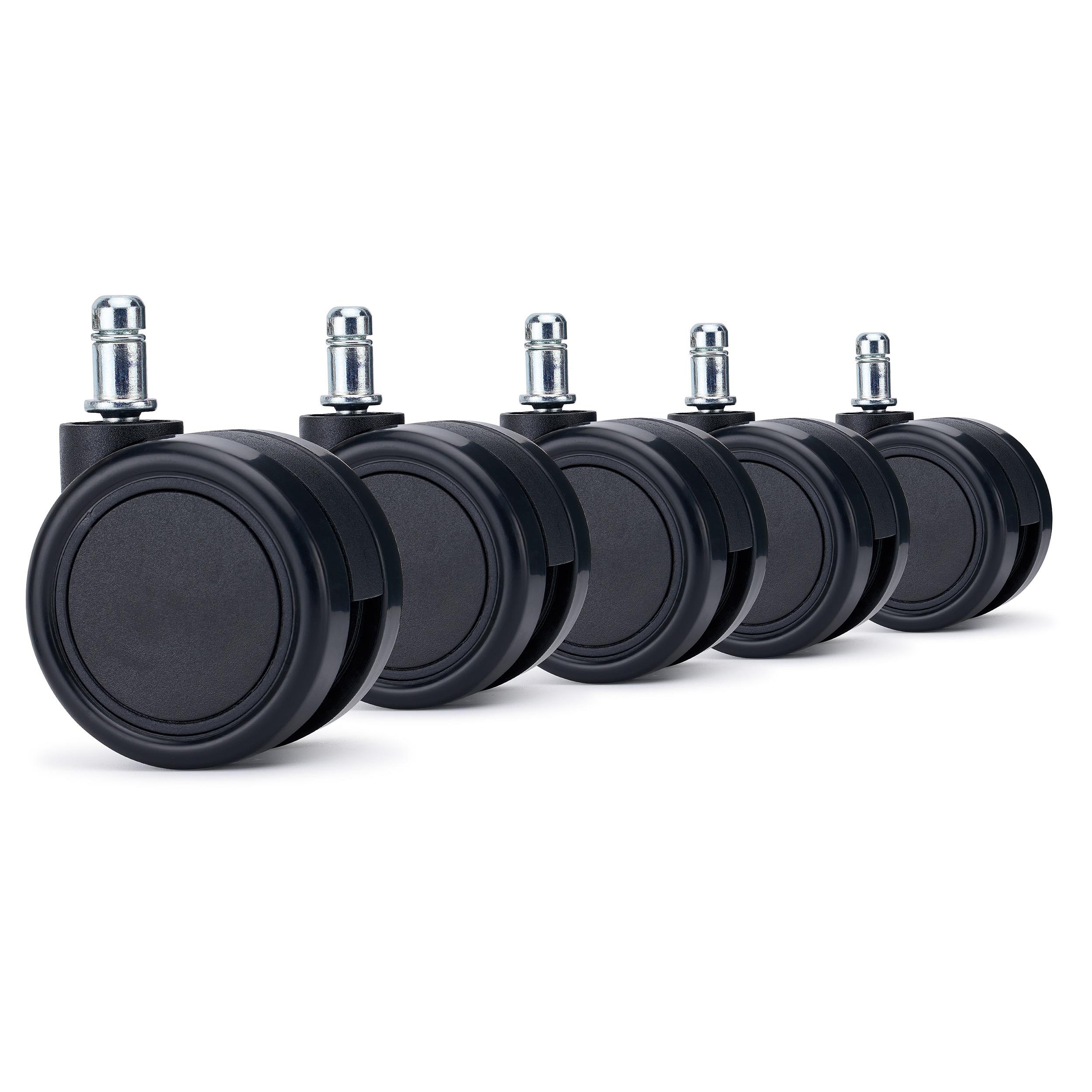 Lot de 5 roulettes pour chaises de bureau MOON. Ces roulettes allient design essentiel, solidité de fabrication et grande fluidité de mouvement, offrant une solution fiable pour les chaises de bureau, chaises opérationnelles et sièges de bureau. Le diamètre de 50 mm garantit des mouvements fluides et contrôlés, facilitant les déplacements et améliorant le confort lors de l’utilisation quotidienne.