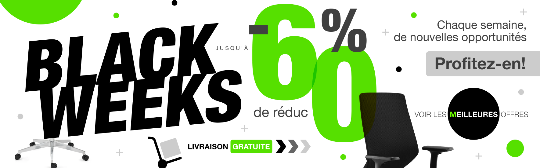 Nous travaillons chaque jour pour vous offrir une expérience incroyable lors de votre visite sur notre site web et lors du choix de votre chaise de bureau ou autre mobilier. Nous avons par exemple une gamme très intéressante de chaises ergonomiques fabriquées avec les meilleurs matériaux. Nous sommes en effet conscients des changements de notre société et actuellement une entreprise ou un particulier à son compte doit pouvoir compter sur des produits qui lui permet d’être le plus productif possible. Pour que vous puissiez bénéficier rapidement de votre produit et commencer à connaître une nouvelle expérience de confort au travail nous vous facilitons la tâche et nous envoyons gratuitement votre produit. Nous travaillons en effet avec un service de transport exceptionnel, avec des envois dans les plus brefs délais, gratuit et quel que soit votre achat. C'est l'un de nos principaux avantages et nos clients l’apprécient particulièrement !