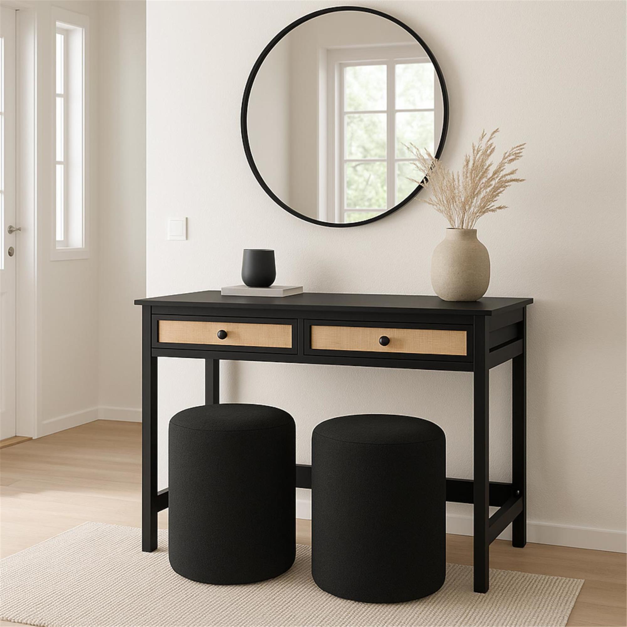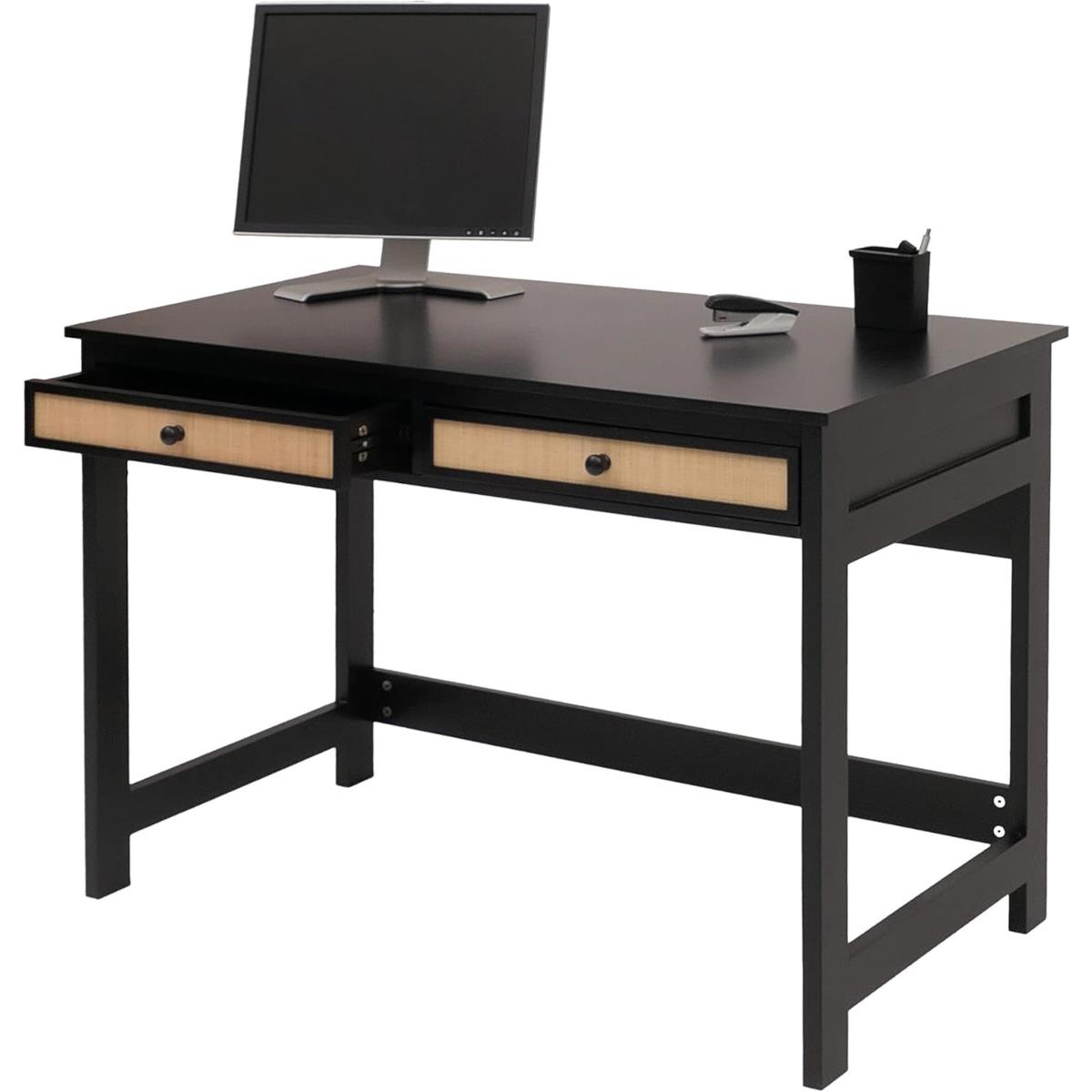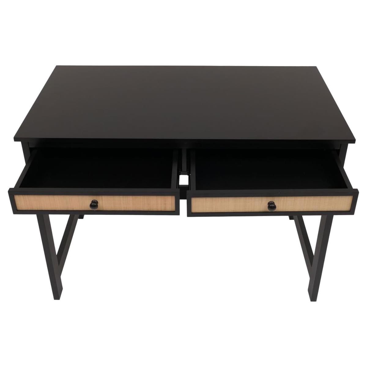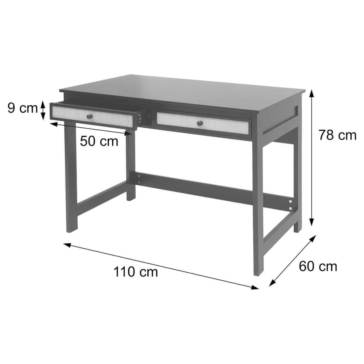 Le bureau est équipé de deux tiroirs pratiques avec glissières coulissantes, offrant un espace de rangement pour documents ou objets que l’on souhaite garder hors de vue.