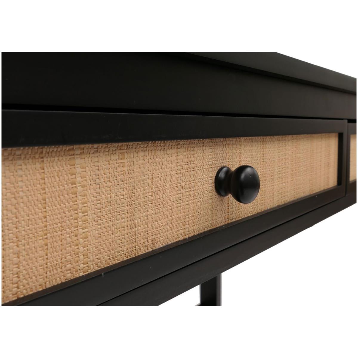 Un élément distinctif est constitué par les tiroirs avec panneaux frontaux en raphia, qui confèrent au bureau un aspect naturel et chaleureux.