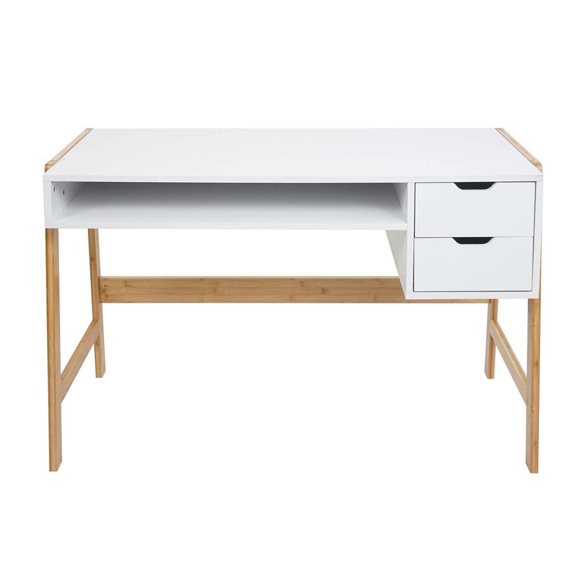 C'est un bureau parfait pour les petits espaces, idéal pour un usage quotidien. Il est équipé de deux tiroirs pratiques pour le rangement. Ainsi, vous pourrez garder votre surface de travail en ordre. Ce bureau informatqiue dispose également d'un grand espace de rangement ouvert sous le plateau principal, où il vous sera tout à fait possible de ranger tous les documents et objets dont vous avez besoin à portée de main.