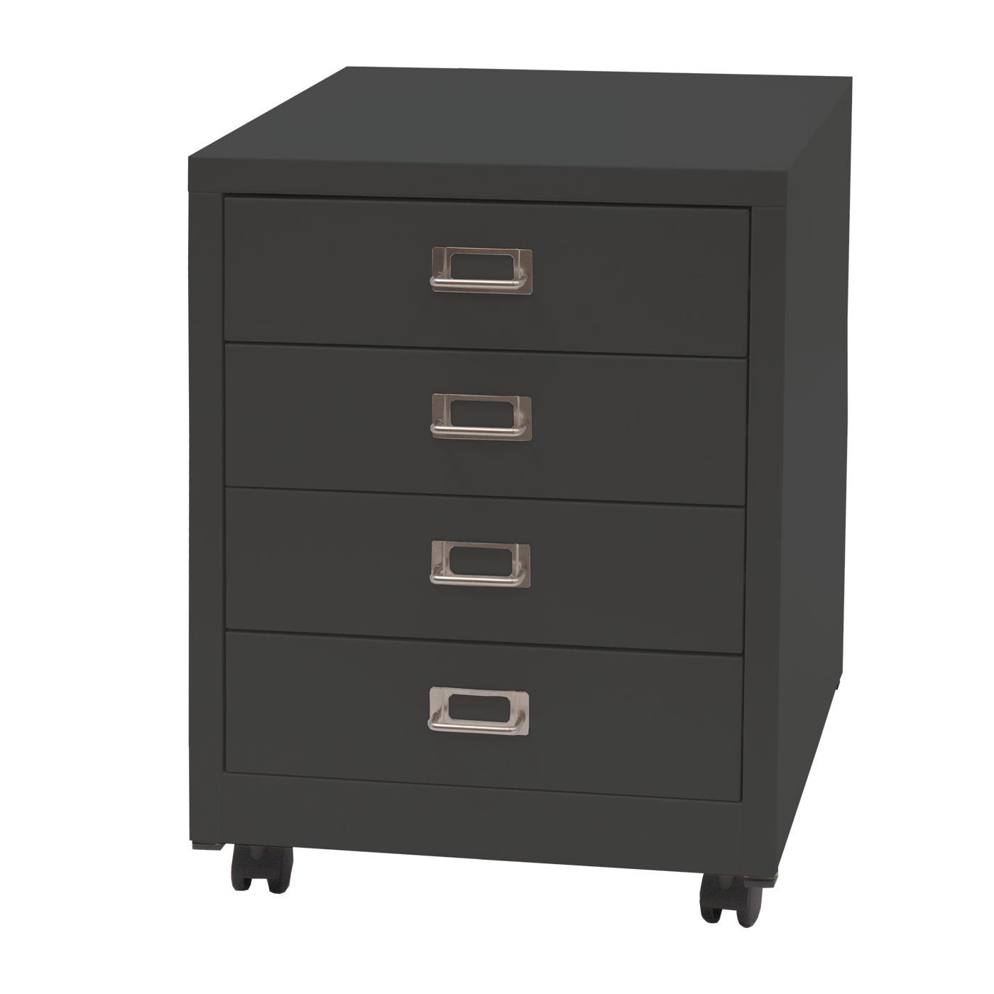 Caisson Mobile DONY, 4 Tiroirs, 40x41x55 cm, en Acier, Gris foncé