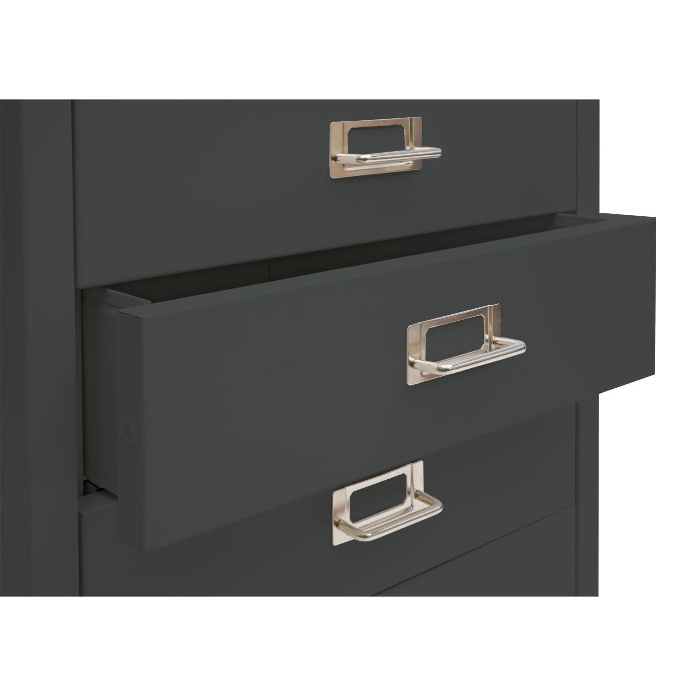 Les tiroirs sont munis d’un porte-étiquette d’identifier d’un coup d’œil son contenu. Sa construction robuste garantit une stabilité et une conservation optimales de vos dossiers. Le classeur est fabriqué en tôle d'acier laminée à froid de 0,6 mm, une épaisseur supérieure à celle généralement utilisée pour ce type de mobilier. Il est équipé de quatre roulettes, dont deux peuvent être bloquées pour garantir une position stable. Cela permet de le déplacer rapidement et facilement vers un autre emplacement si nécessaire.