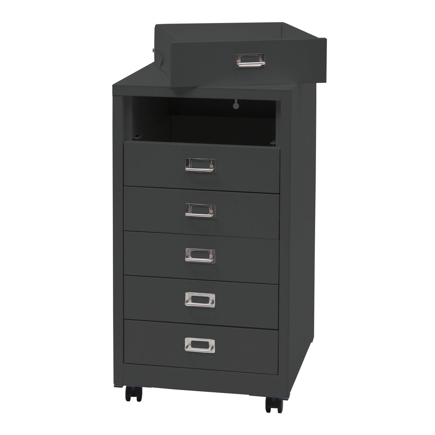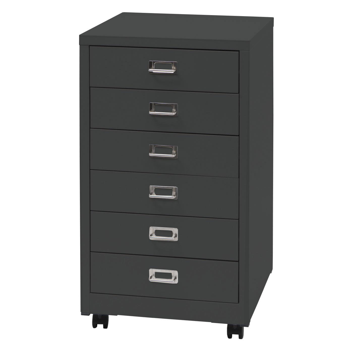 Caisson Mobile DONY, 6 Tiroirs, 40x41x75 cm, en Acier, Gris foncé