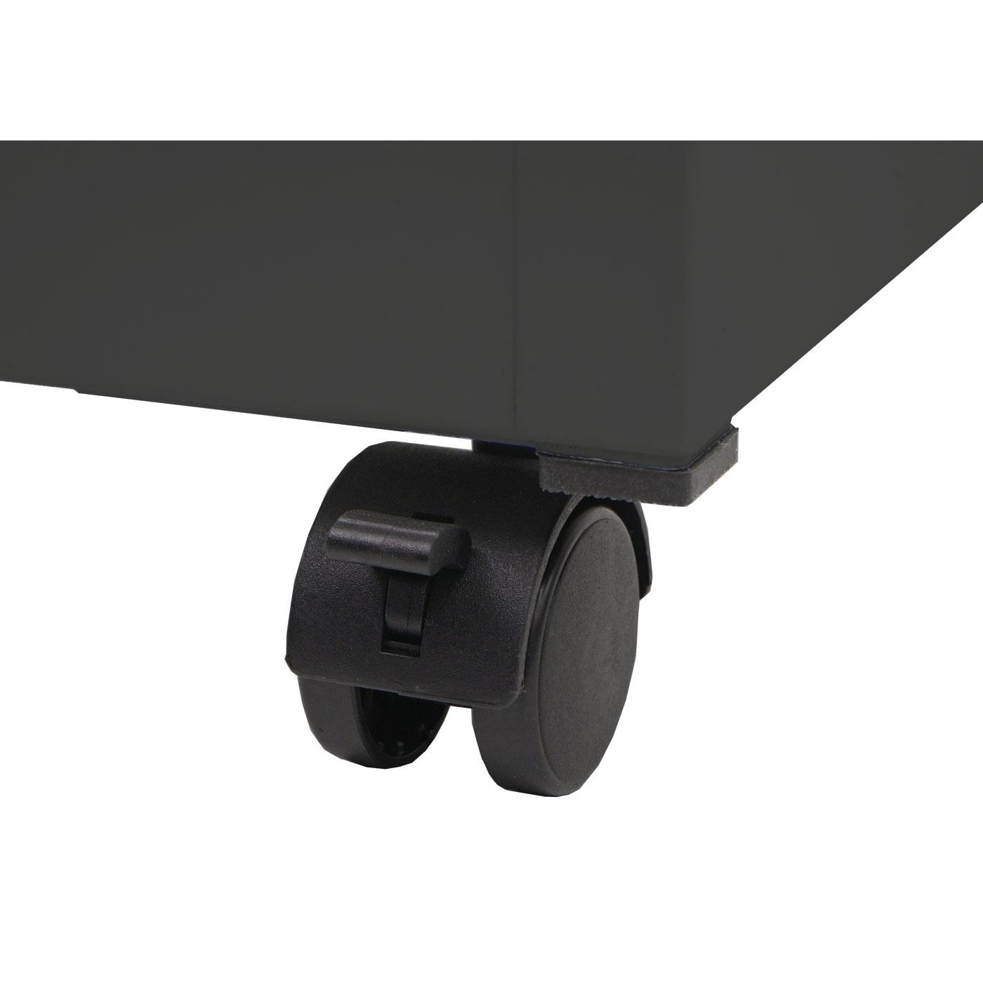 Les tiroirs sont munis d’un porte-étiquette d’identifier d’un coup d’œil son contenu. Sa construction robuste garantit une stabilité et une conservation optimales de vos dossiers. Le classeur est fabriqué en tôle d'acier laminée à froid de 0,6 mm, une épaisseur supérieure à celle généralement utilisée pour ce type de mobilier. Il est équipé de quatre roulettes, dont deux peuvent être bloquées pour garantir une position stable. Cela permet de le déplacer rapidement et facilement vers un autre emplacement si nécessaire.