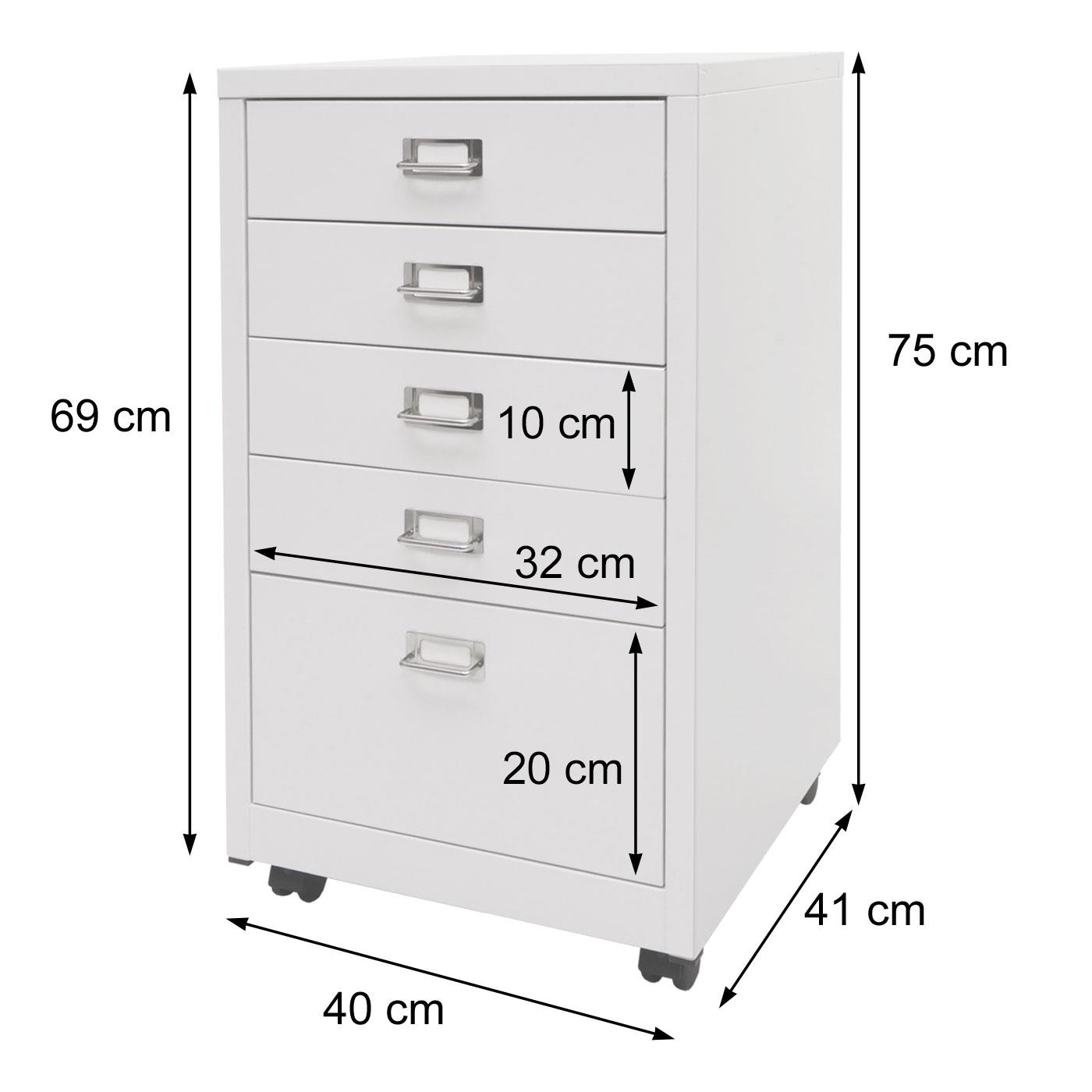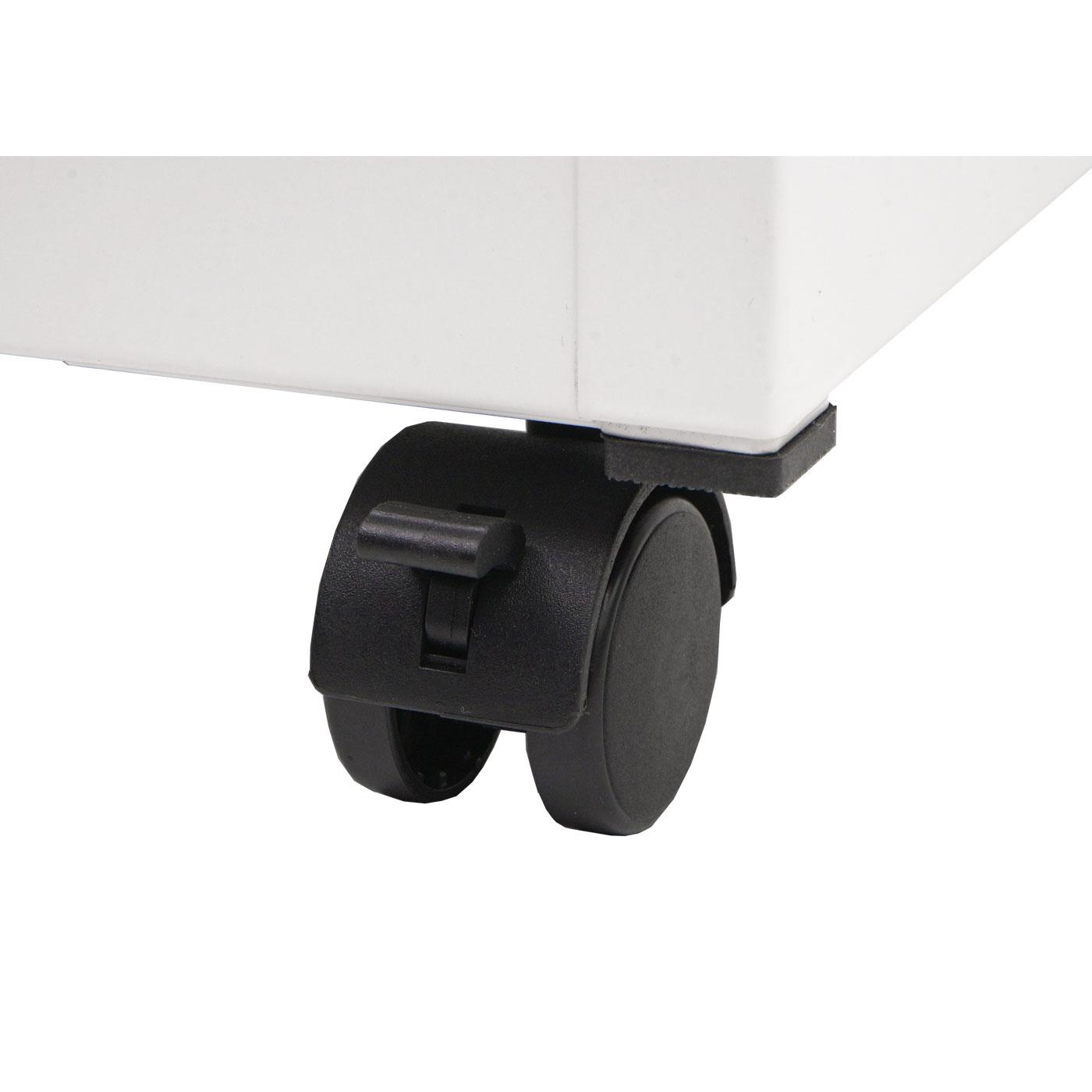 Les tiroirs sont munis d’un porte-étiquette d’identifier d’un coup d’œil son contenu. Sa construction robuste garantit une stabilité et une conservation optimales de vos dossiers. Le classeur est fabriqué en tôle d'acier laminée à froid de 0,6 mm, une épaisseur supérieure à celle généralement utilisée pour ce type de mobilier. Il est équipé de quatre roulettes, dont deux peuvent être bloquées pour garantir une position stable. Cela permet de le déplacer rapidement et facilement vers un autre emplacement si nécessaire.