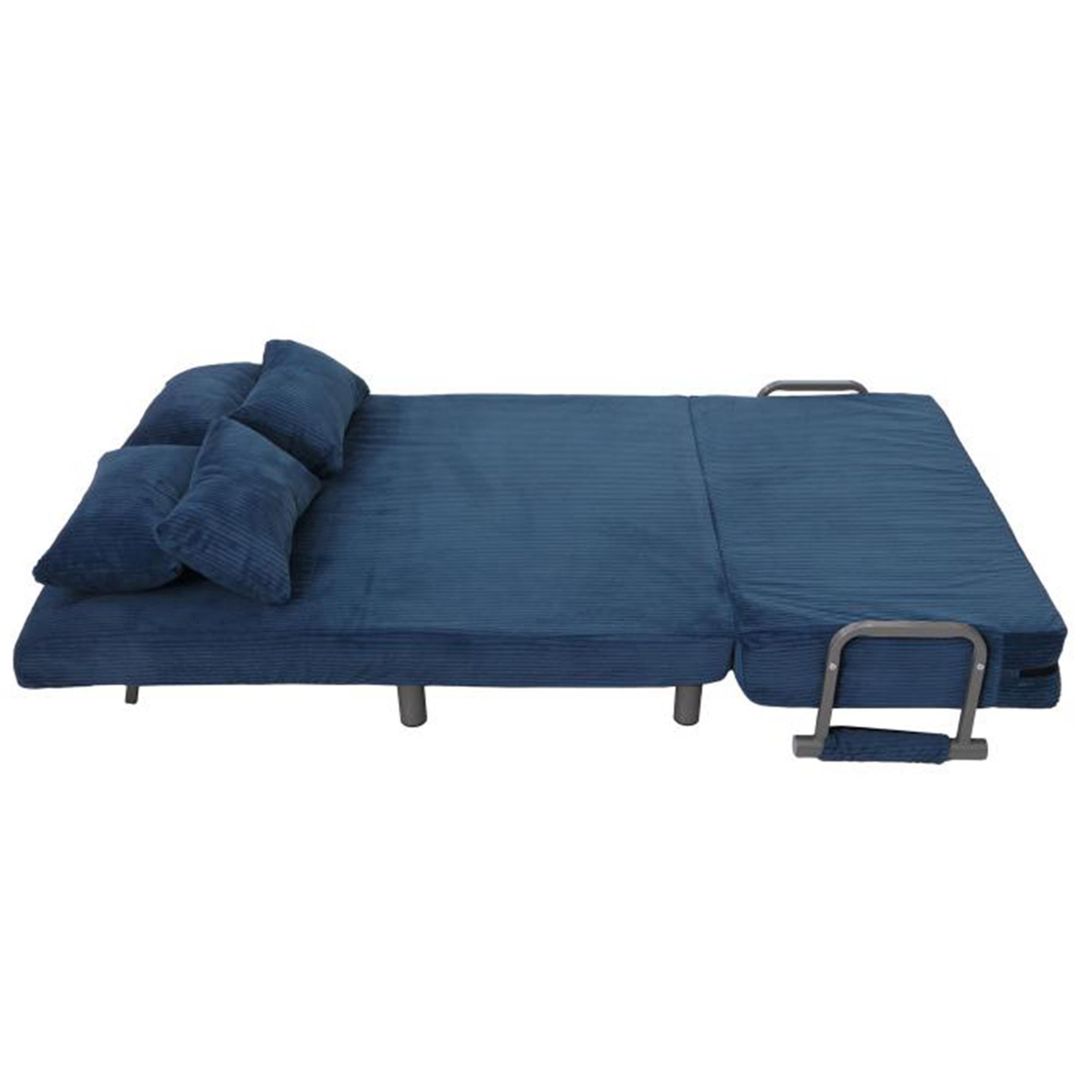 Canapé LESLY 2 places, Convertible en Lit, Confortable et Fonctionnel, en Velours, Bleu