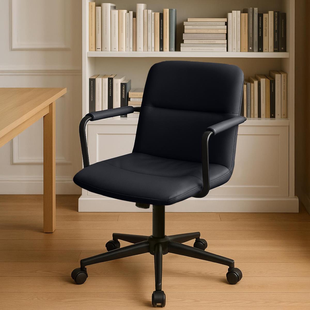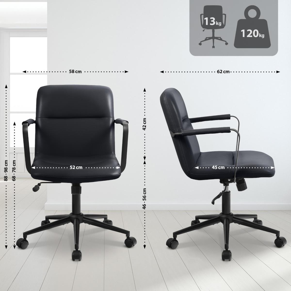 Le design ergonomique de cette chaise garantit un soutien optimal du dos, notamment au niveau des lombaires, favorisant une posture saine pendant de longues journées de travail. L’assise dispose d’un rembourrage épais et d’un dossier avec fonction basculante, qui s’adapte aux mouvements du corps pour offrir une expérience d’utilisation confortable et flexible. De plus, les accoudoirs fixes intégrés assurent un appui stable et confortable, tandis que son design compact conserve une esthétique épurée et professionnelle.