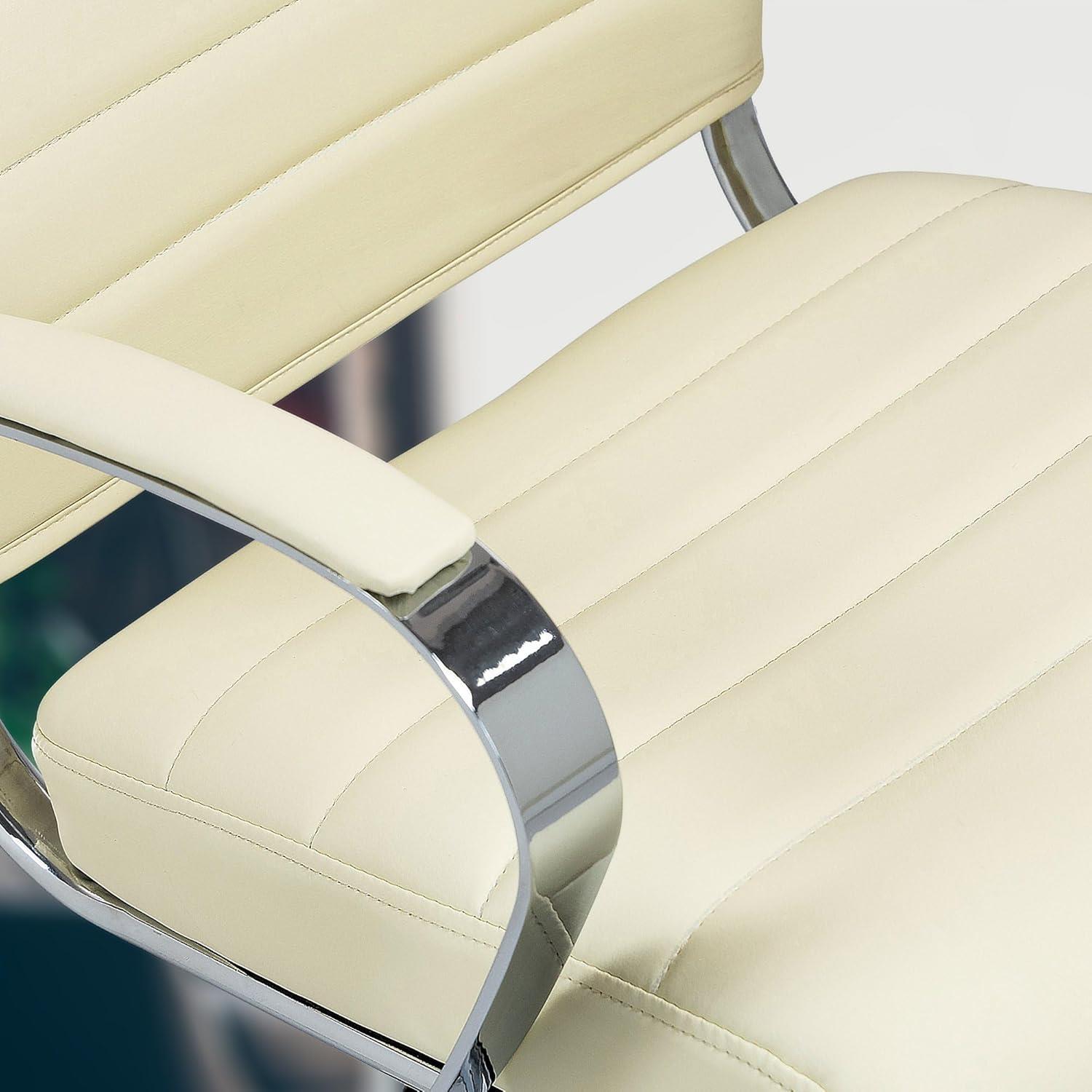 Chaise de bureau EVERY, Structure Métallique Chromée, Design élégant, Cuir, Crème