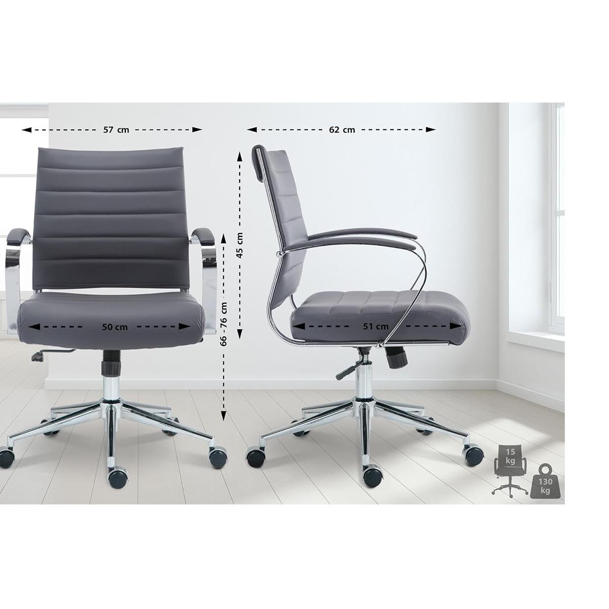Chaise de bureau EVERY, Structure Métallique Chromée, Design élégant, Cuir, Gris