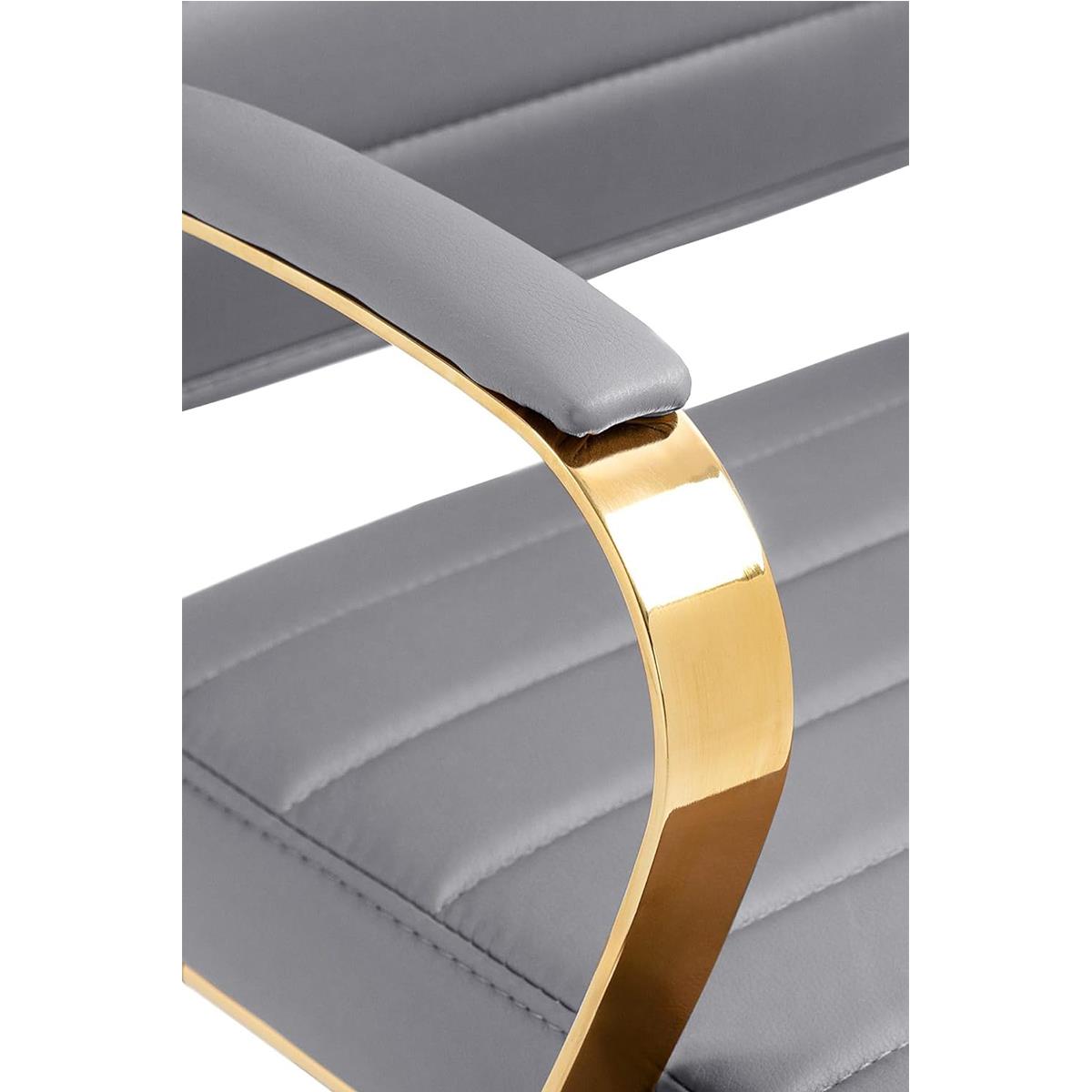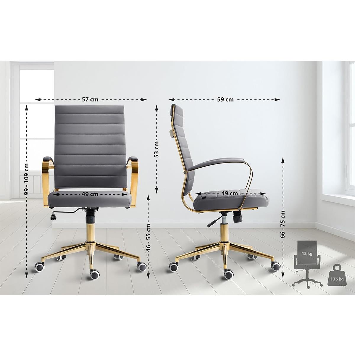 Chaise de bureau KENNETH, Élégante et Moderne, Piétement Métallique Doré, Cuir, Gris