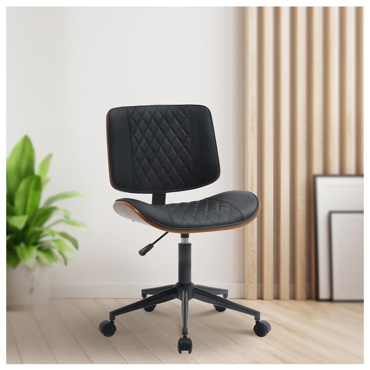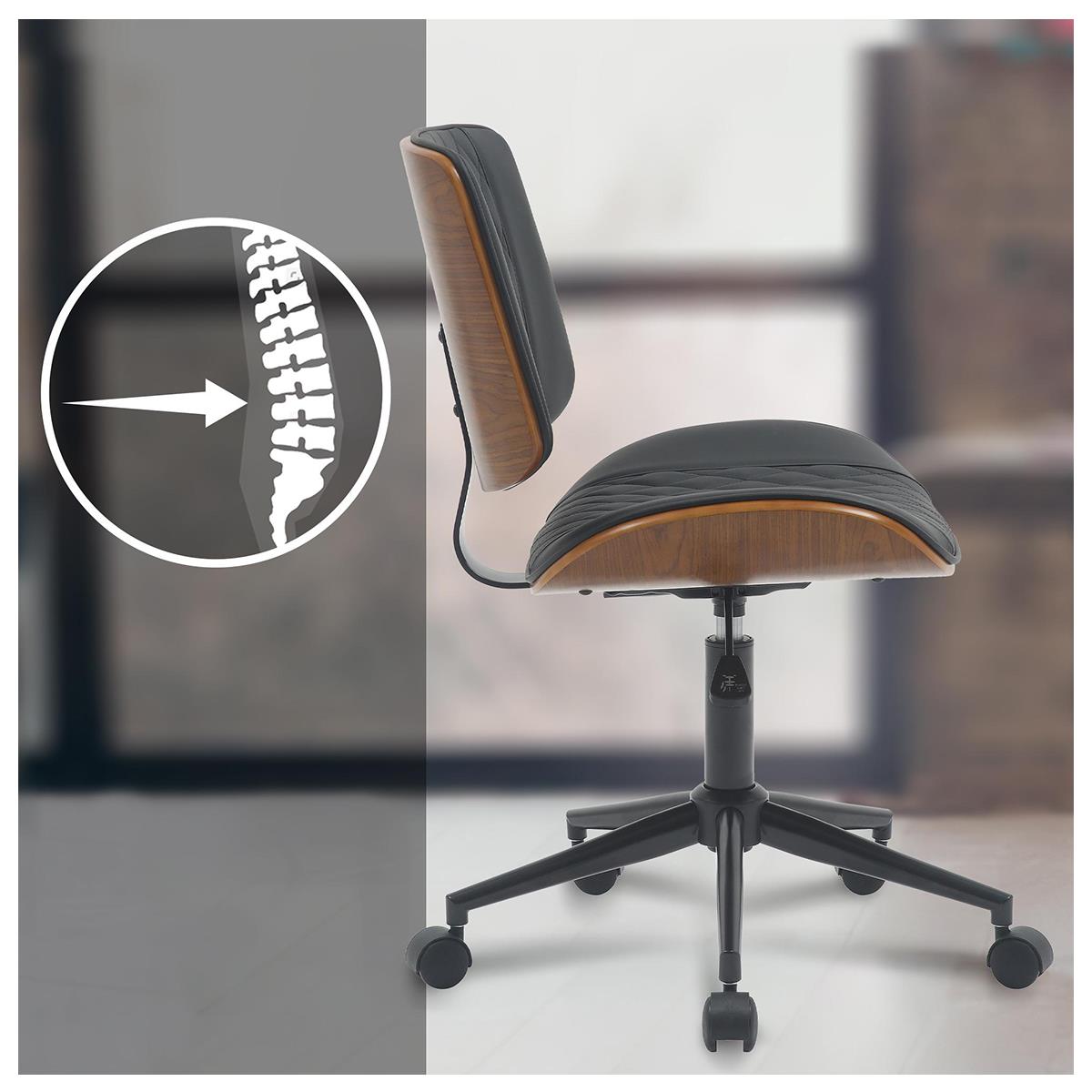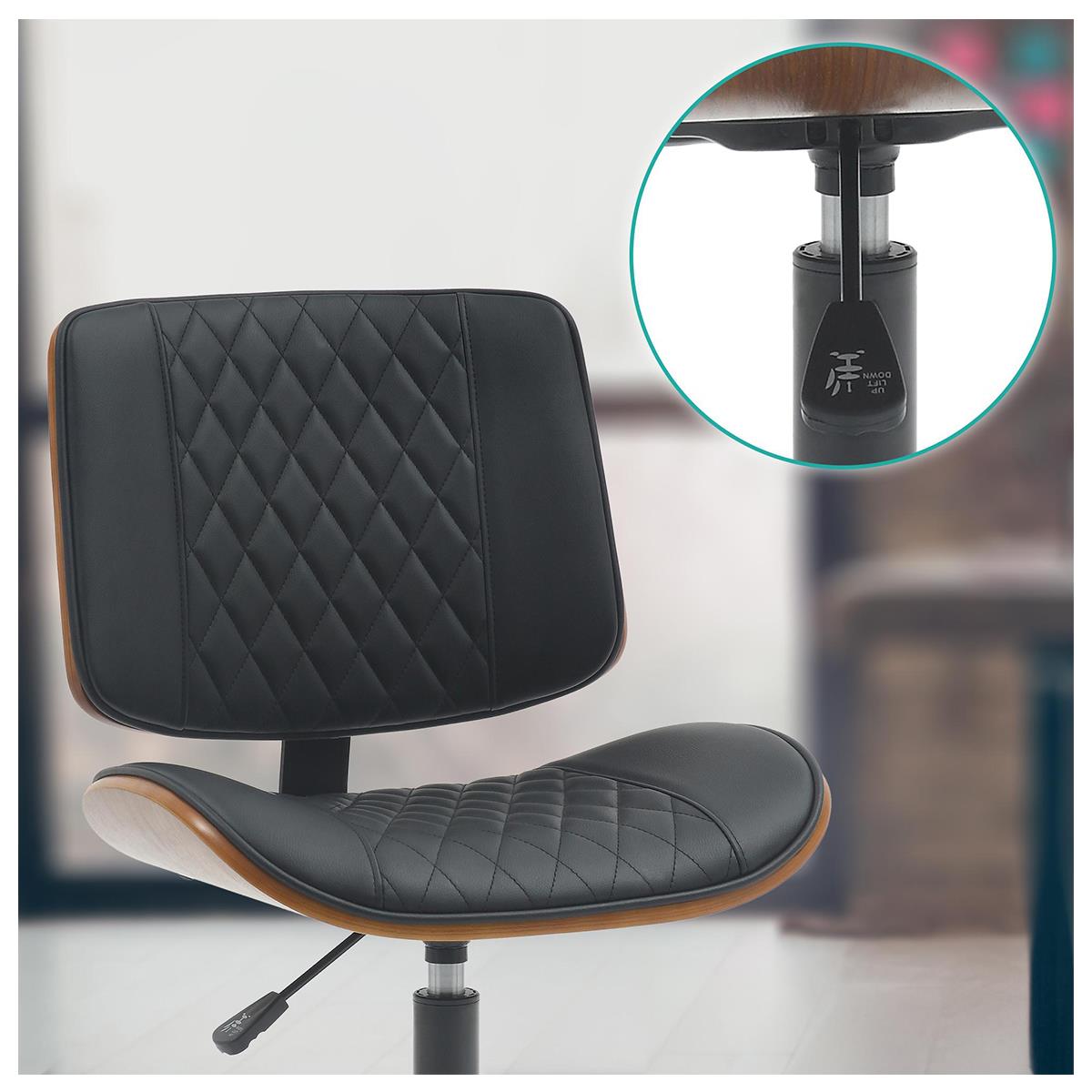 Chaise de Bureau MARYEN, Style Scandinave, Piètement Noir, Noyer et Cuir, Noir