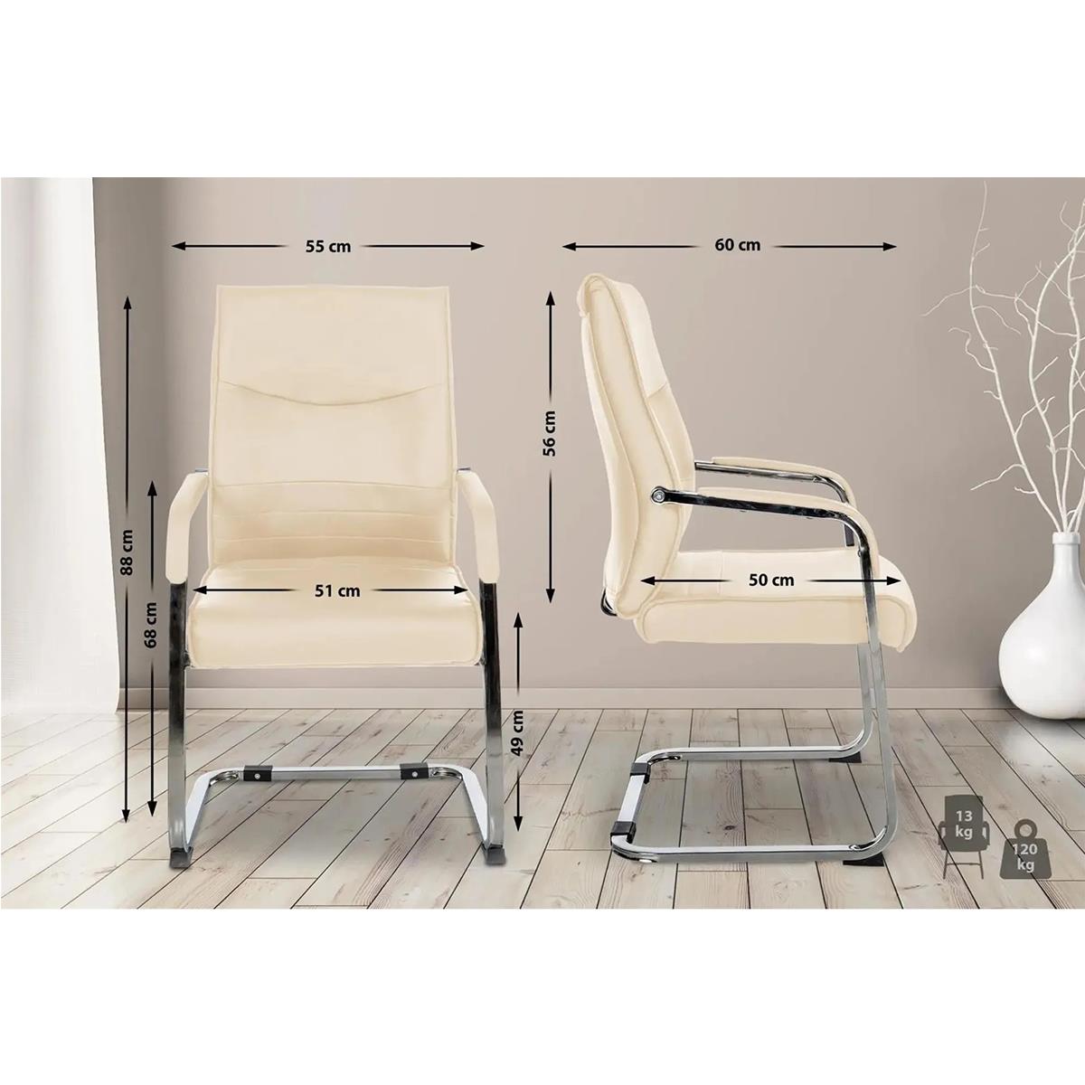 Chaise de réunion BENTON, Grand Rembourrage et Design élégant, en Cuir Crème