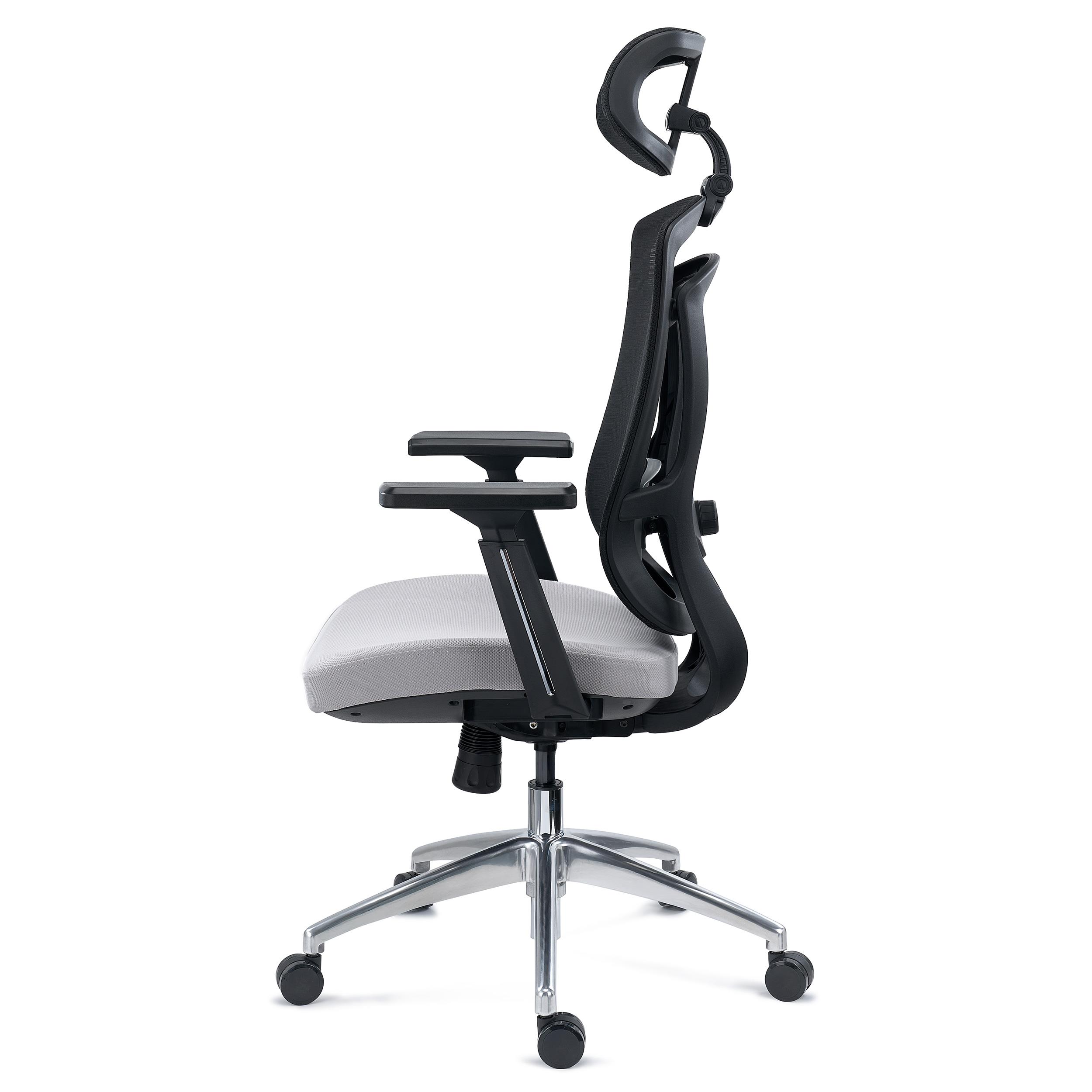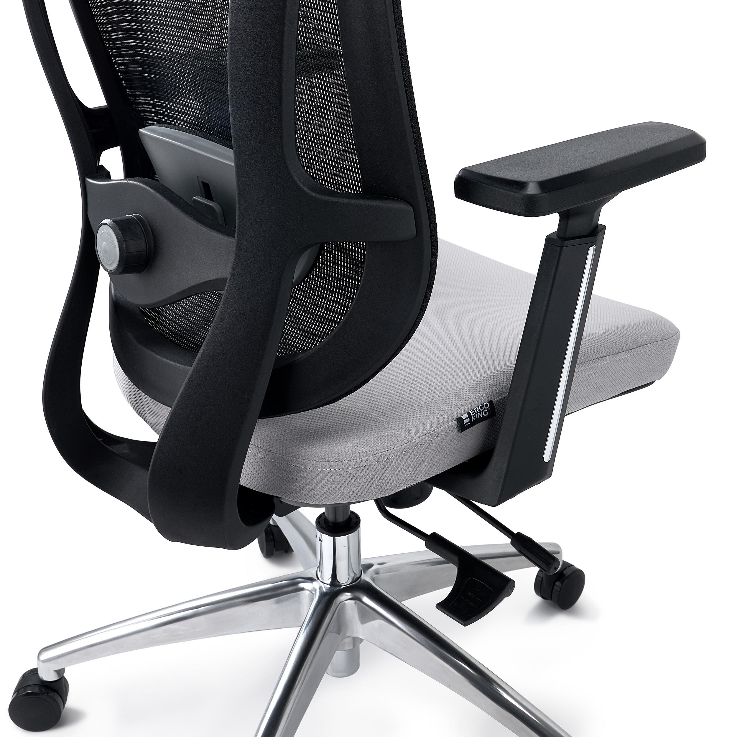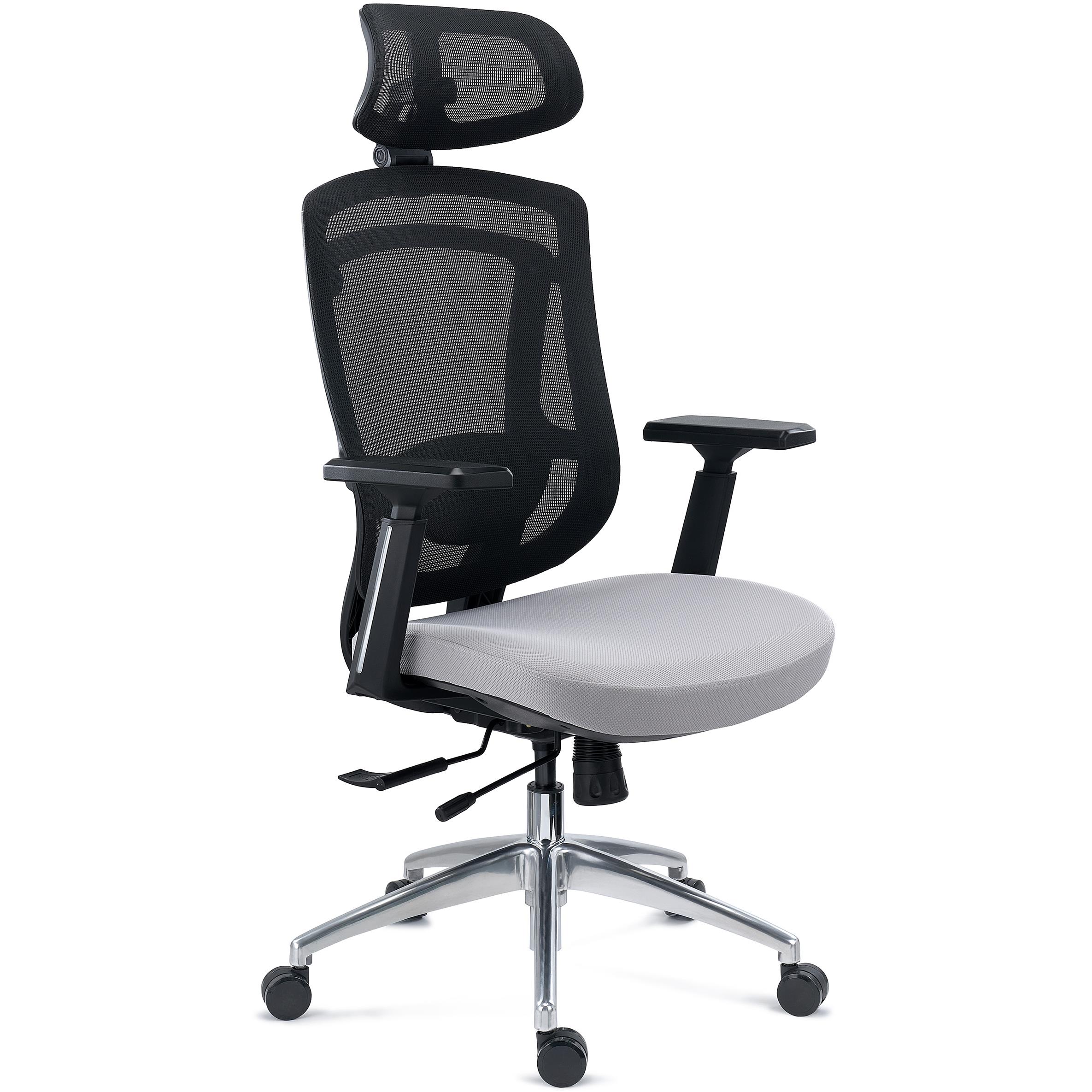 Chaise Ergonomique ASTON, Support Lombaire 3D, Assise Réglable en Profondeur, Utilisation Intensive 8h, Gris