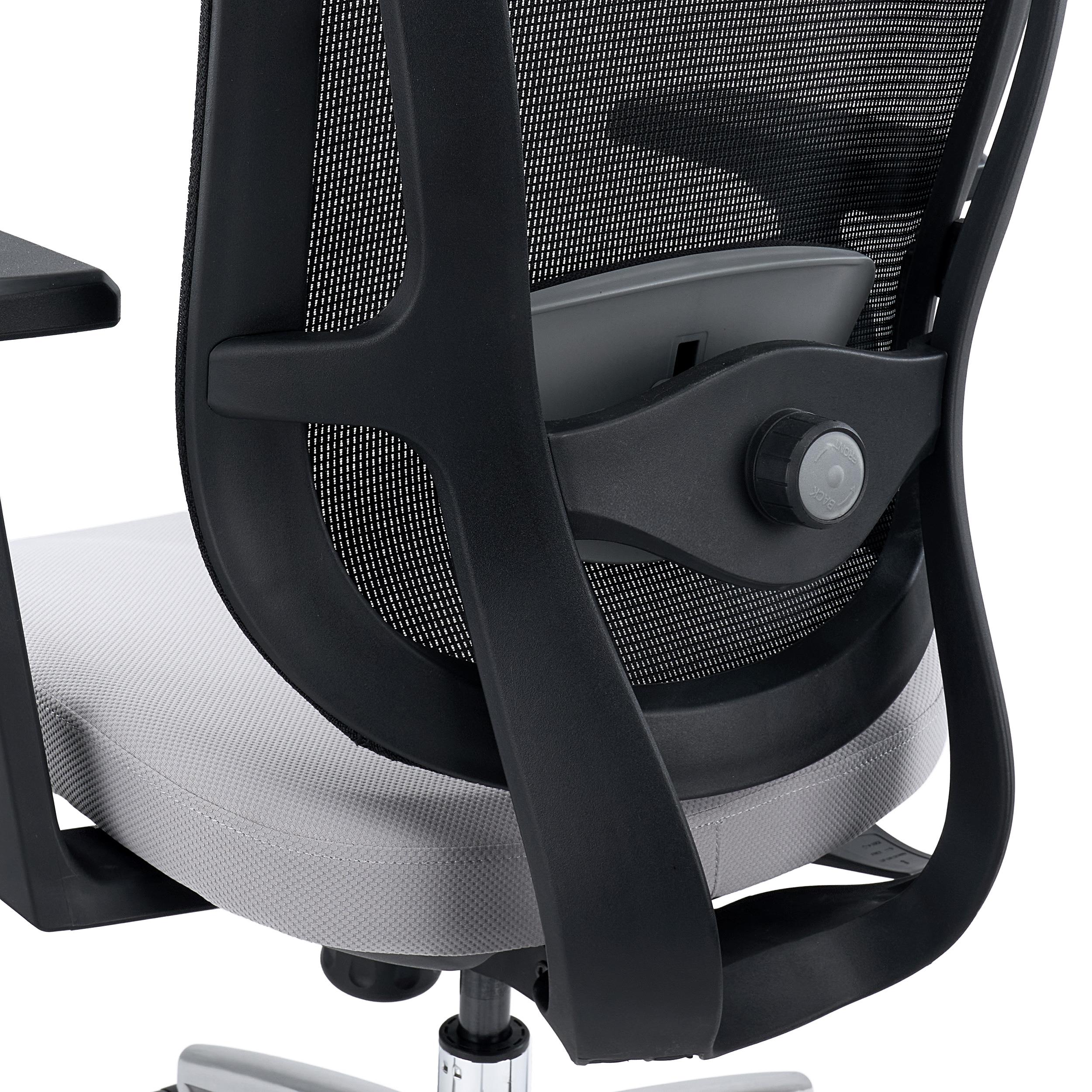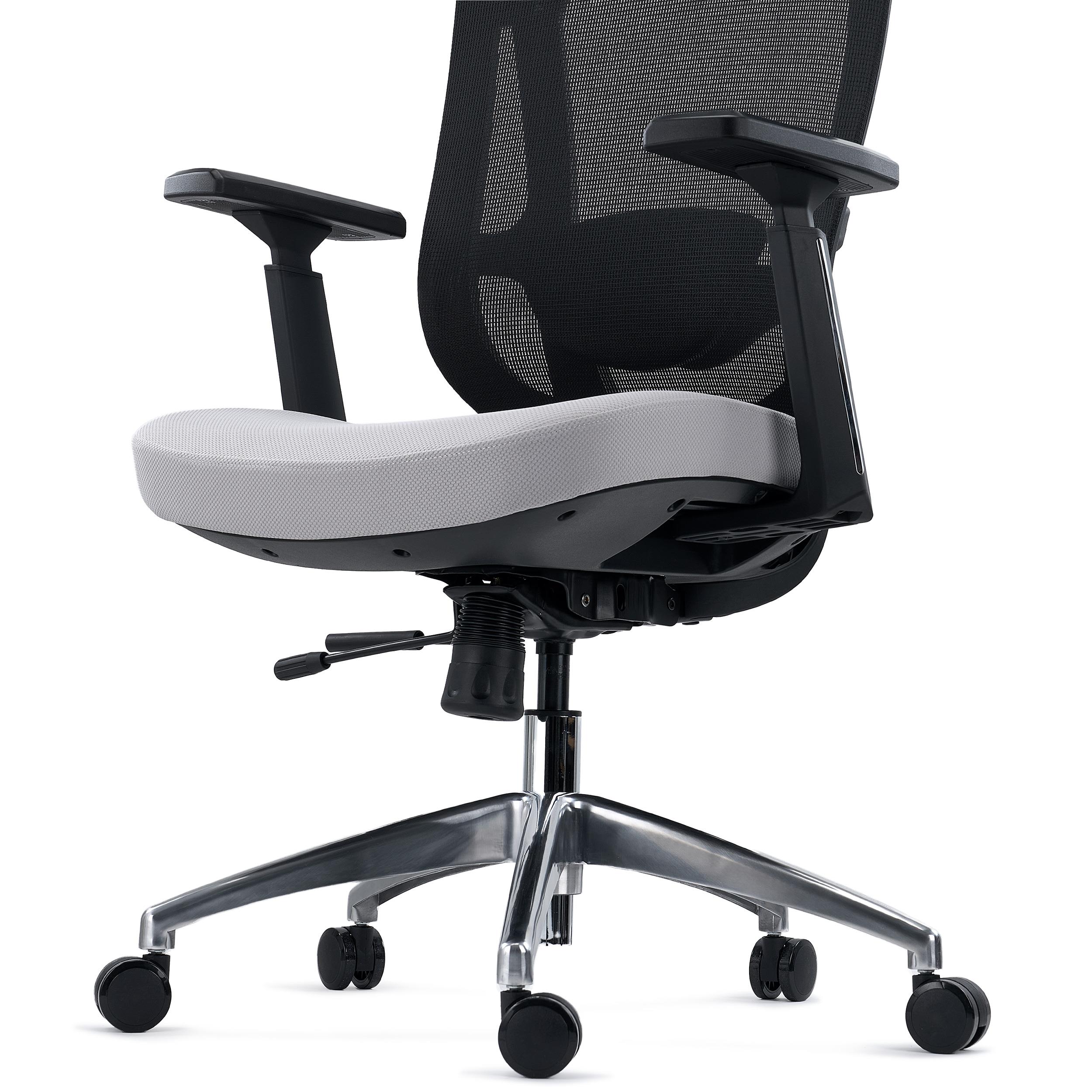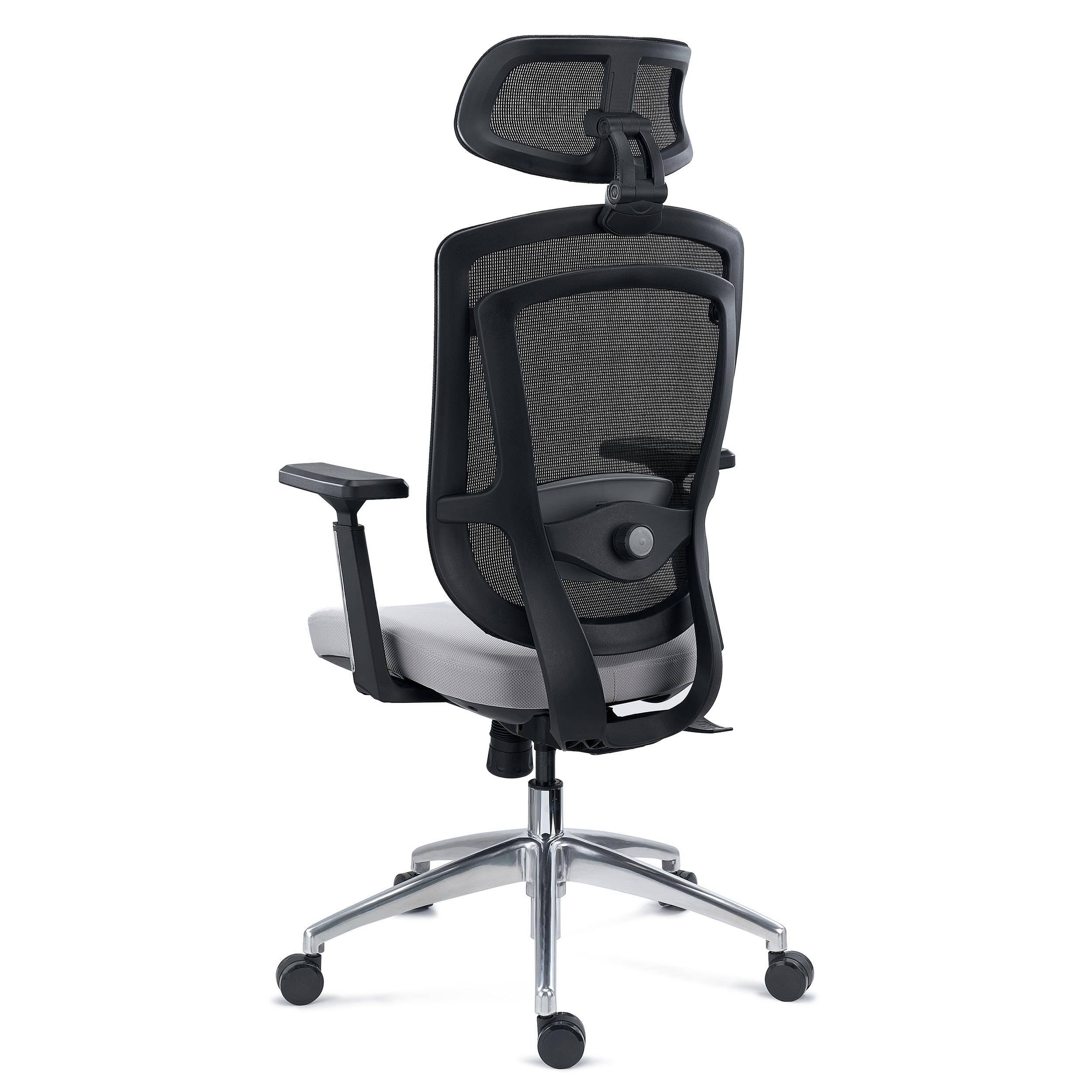 Chaise Ergonomique ASTON, Support Lombaire 3D, Assise Réglable en Profondeur, Utilisation Intensive 8h, Gris