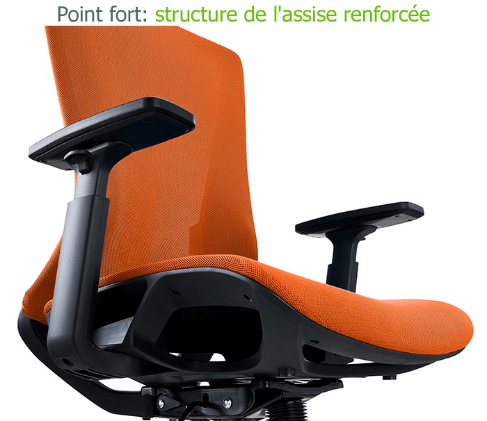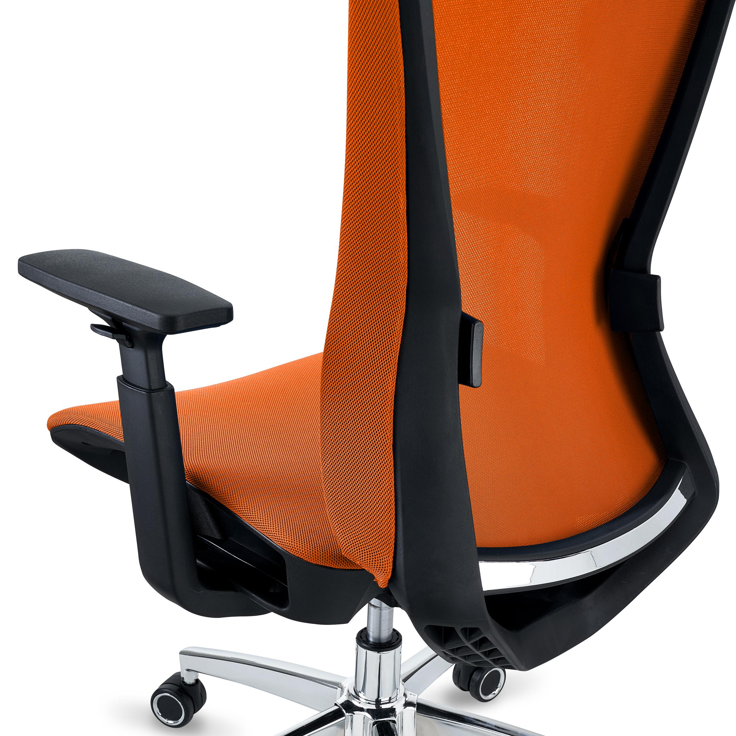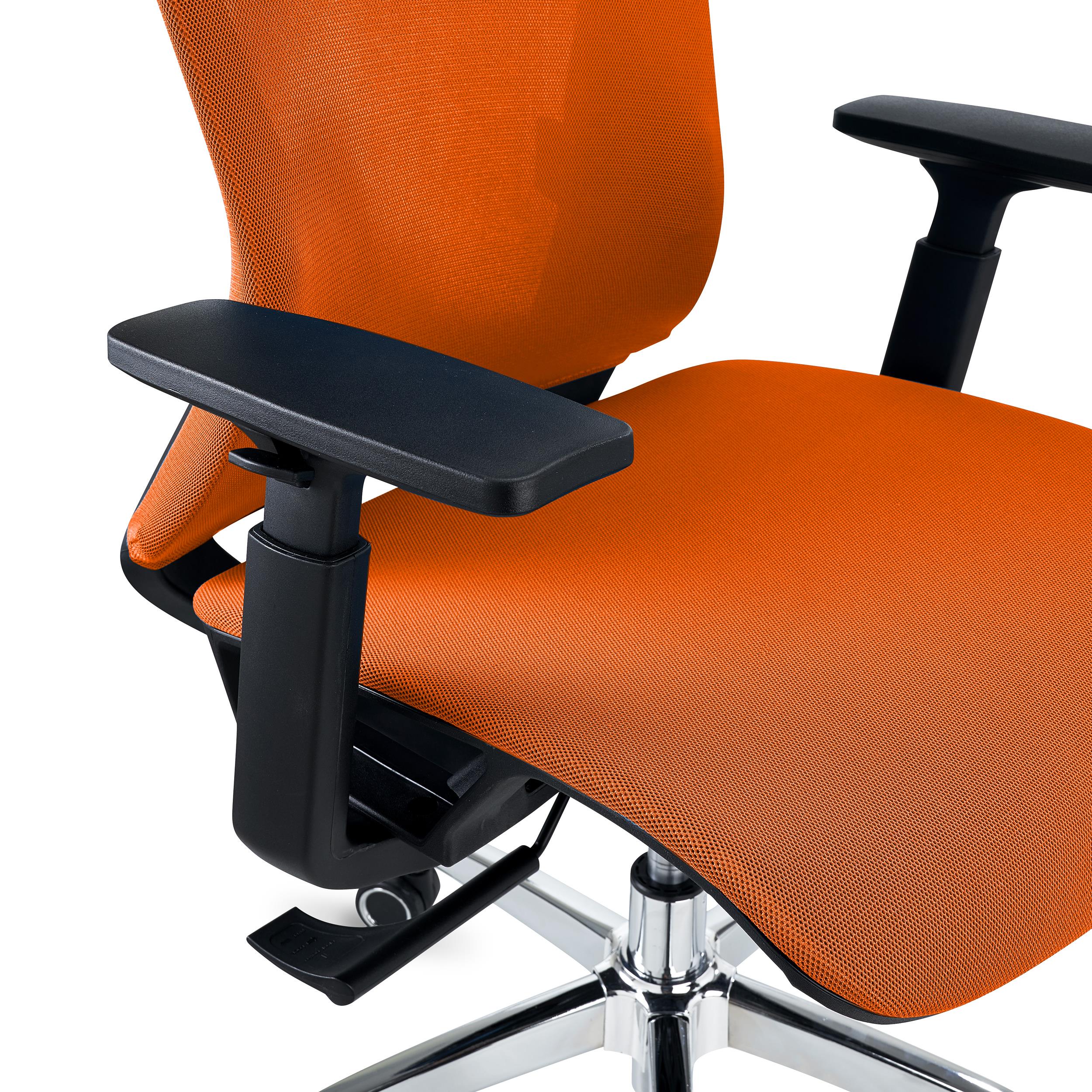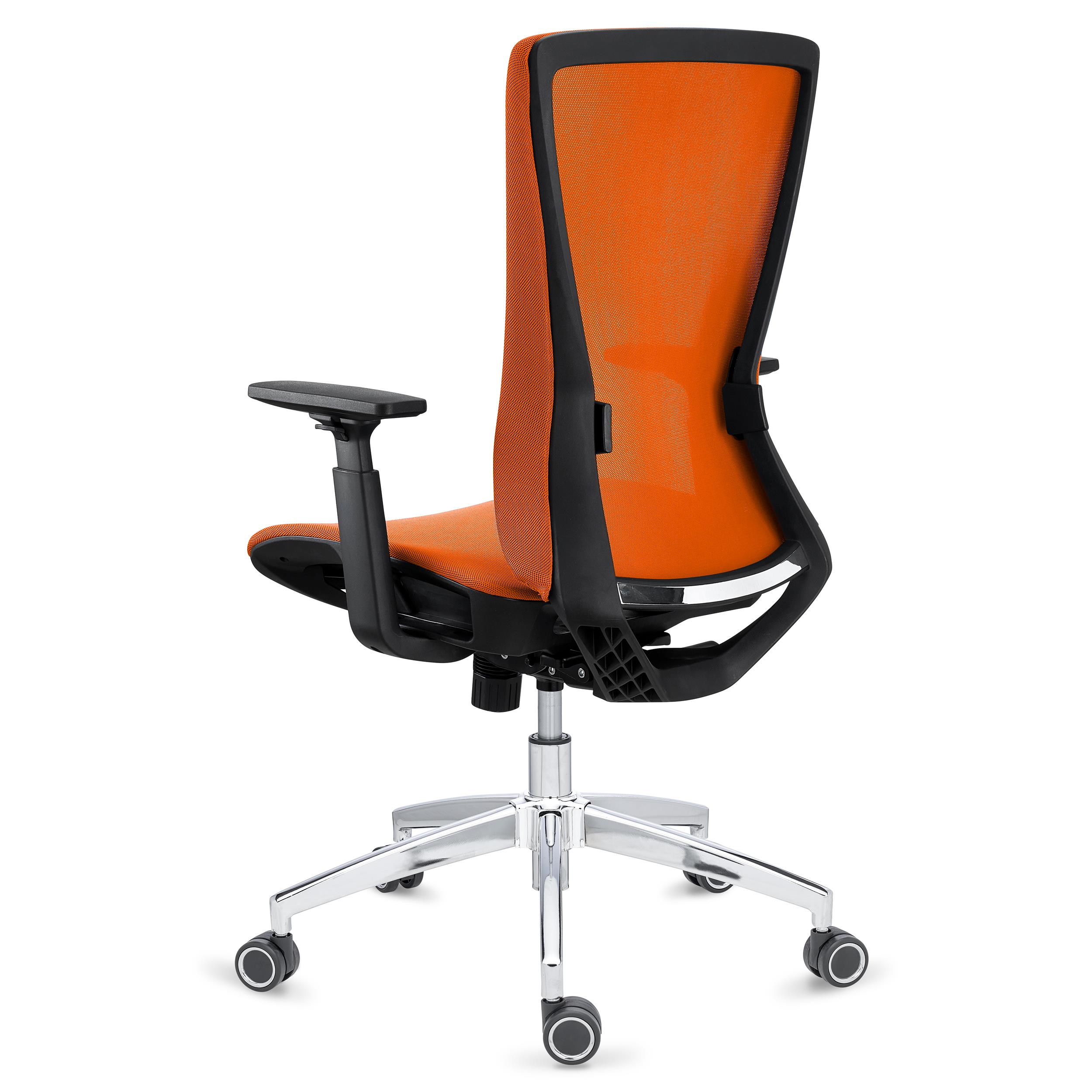 Chaise Ergonomique EVANS, Utilisation 8h, Piétement Métallique, en Tissu et Maille, Orange