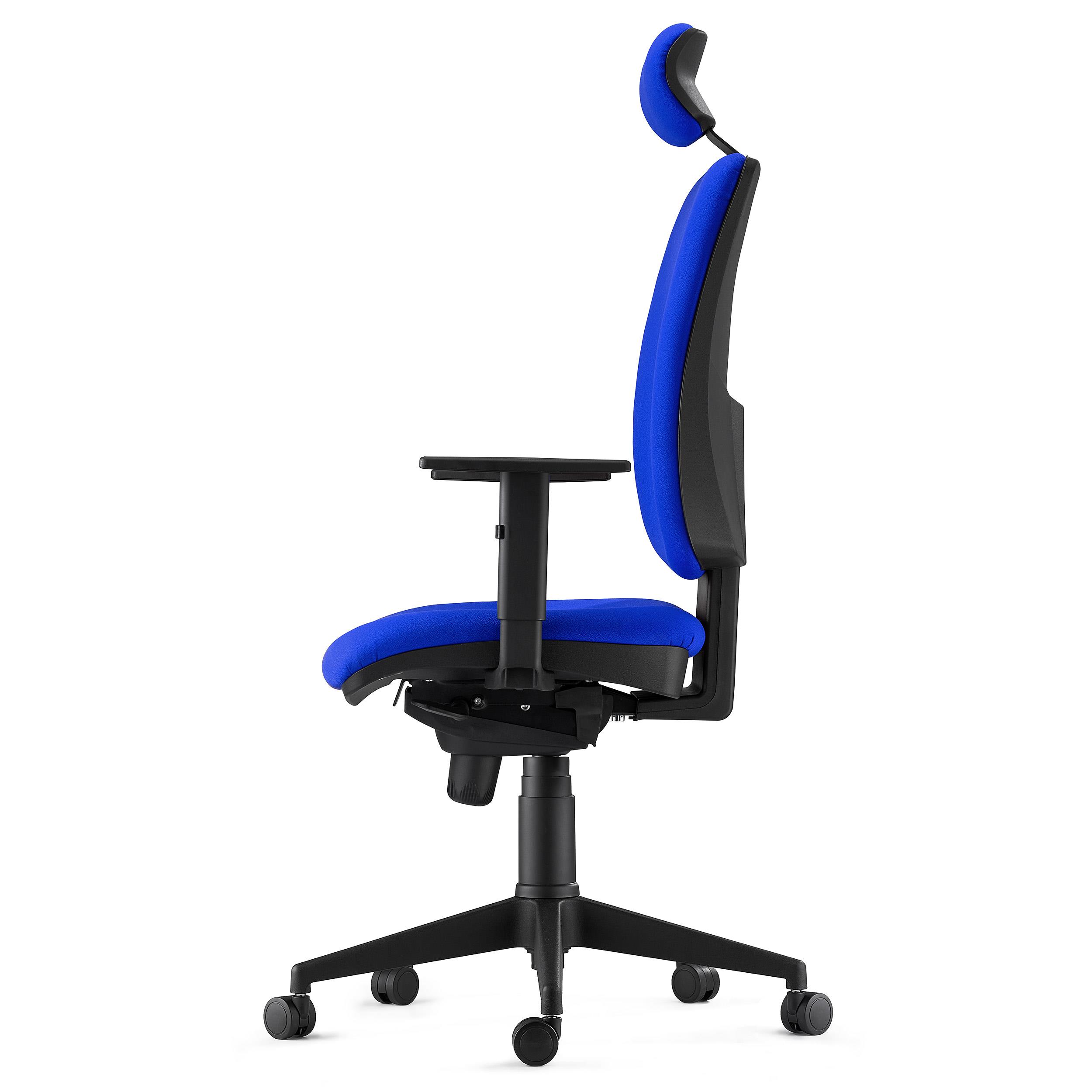 Chaise ergonomique PIERO, Appui-tête et Accoudoirs Ajustables, en Tissu Bleu