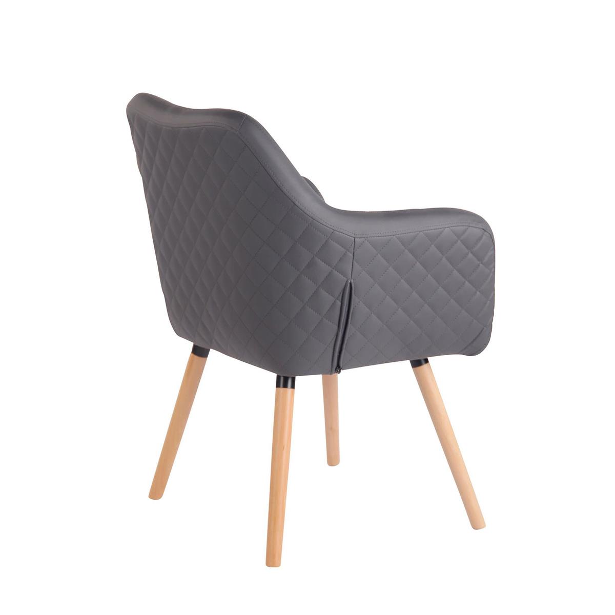 Chaise Visiteur BASILEA, Confortable, Pieds en Bois couleur Hêtre, Cuir, Gris