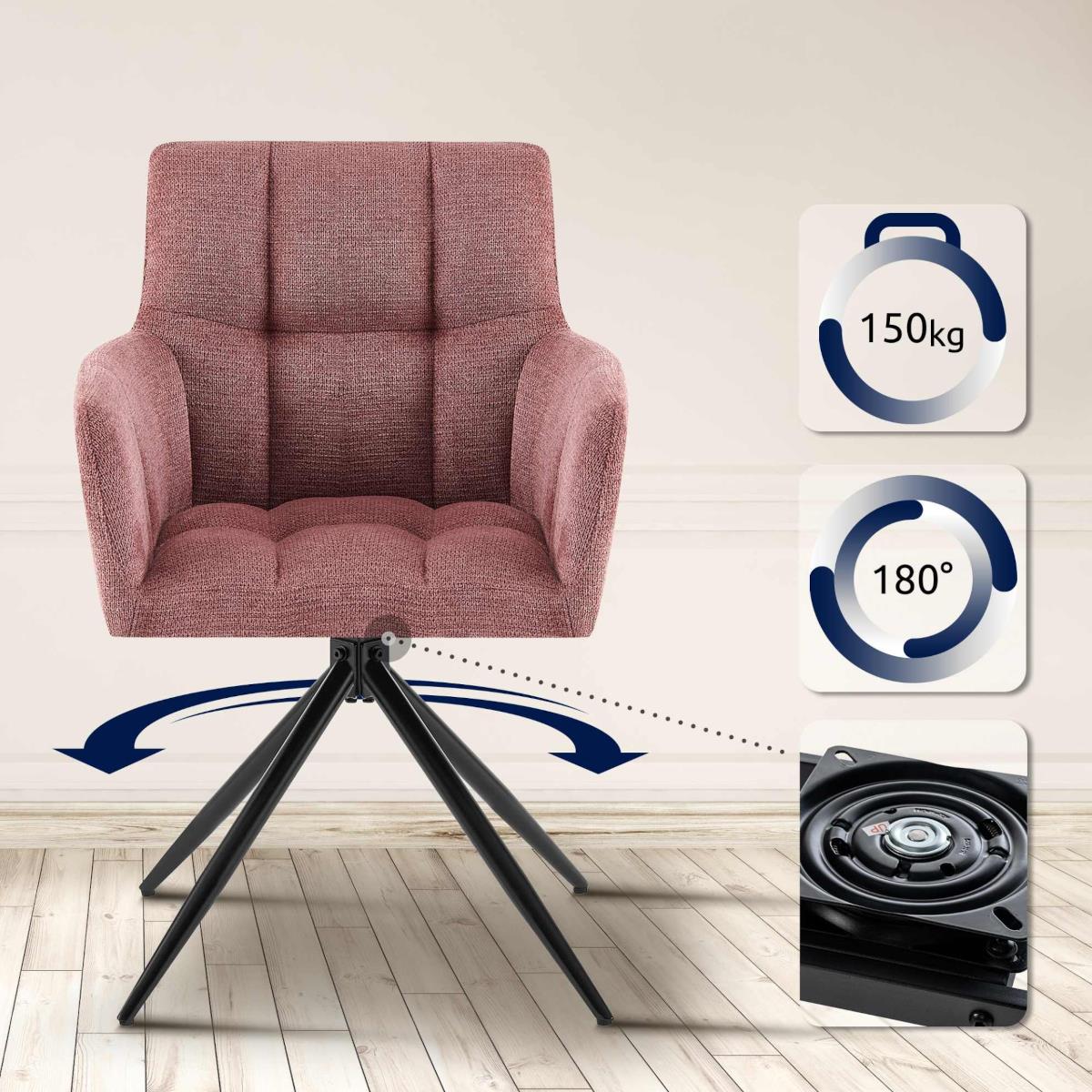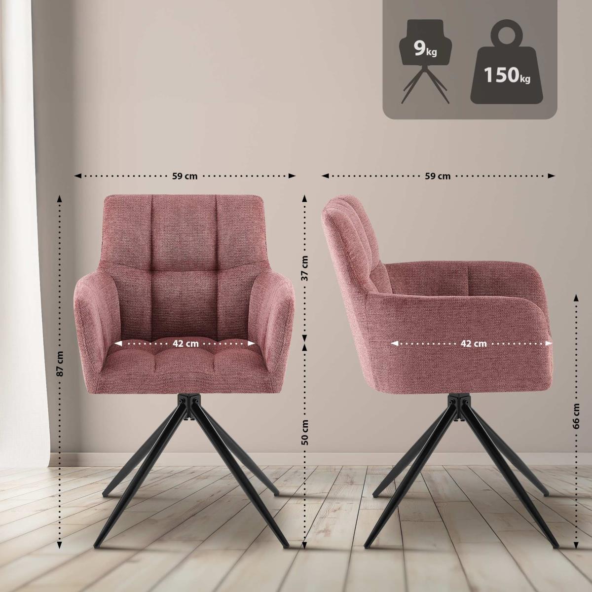 Chaise Visiteur KEMP, Structure Métallique, Pivotante à 180º, Tissu, Rose