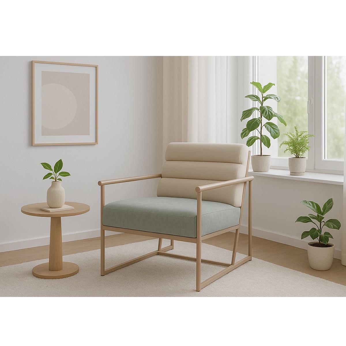 Chaise Visiteur MILLS, Elégance et Confort, Structure Metallique, En Tissu, Crème et Gris-Vert
