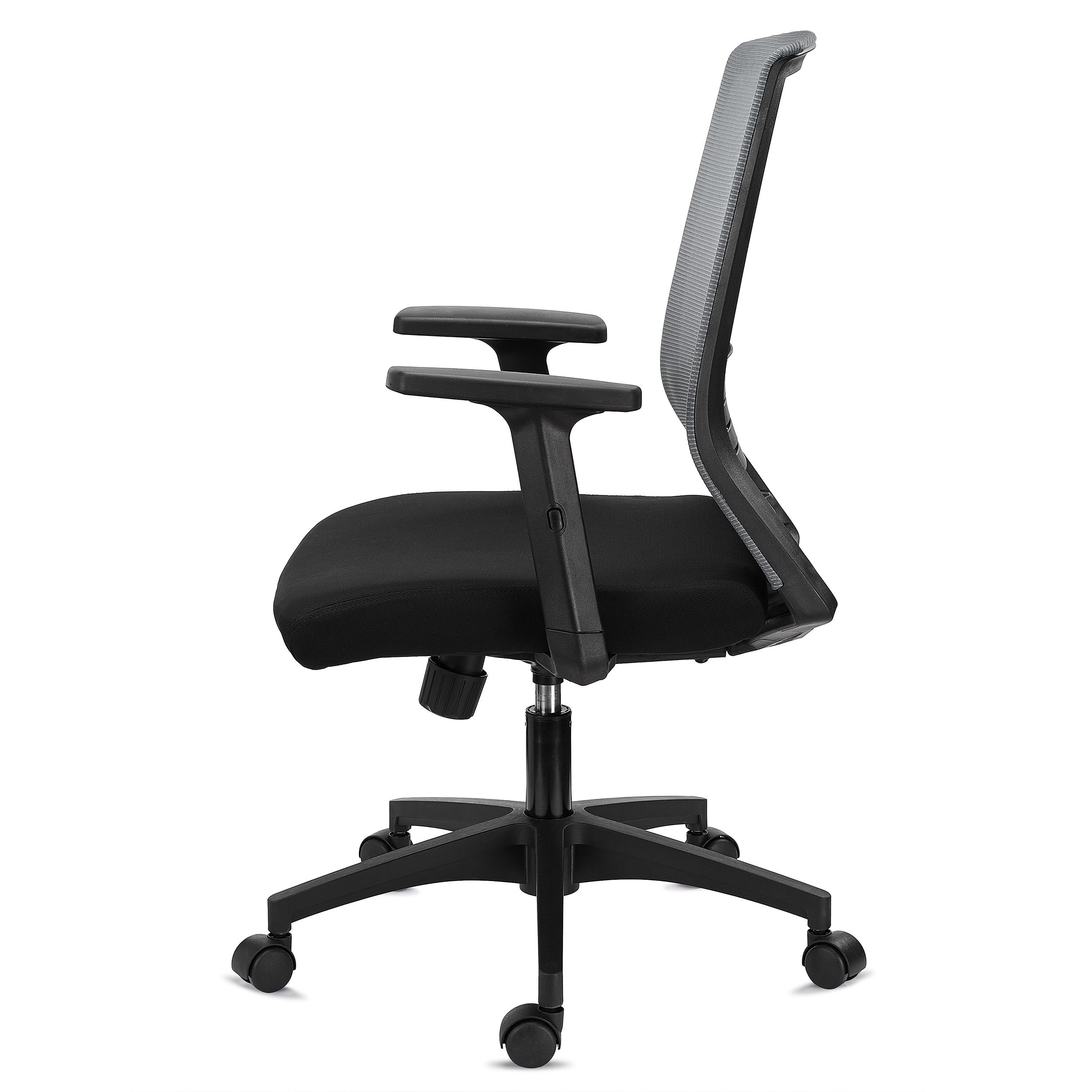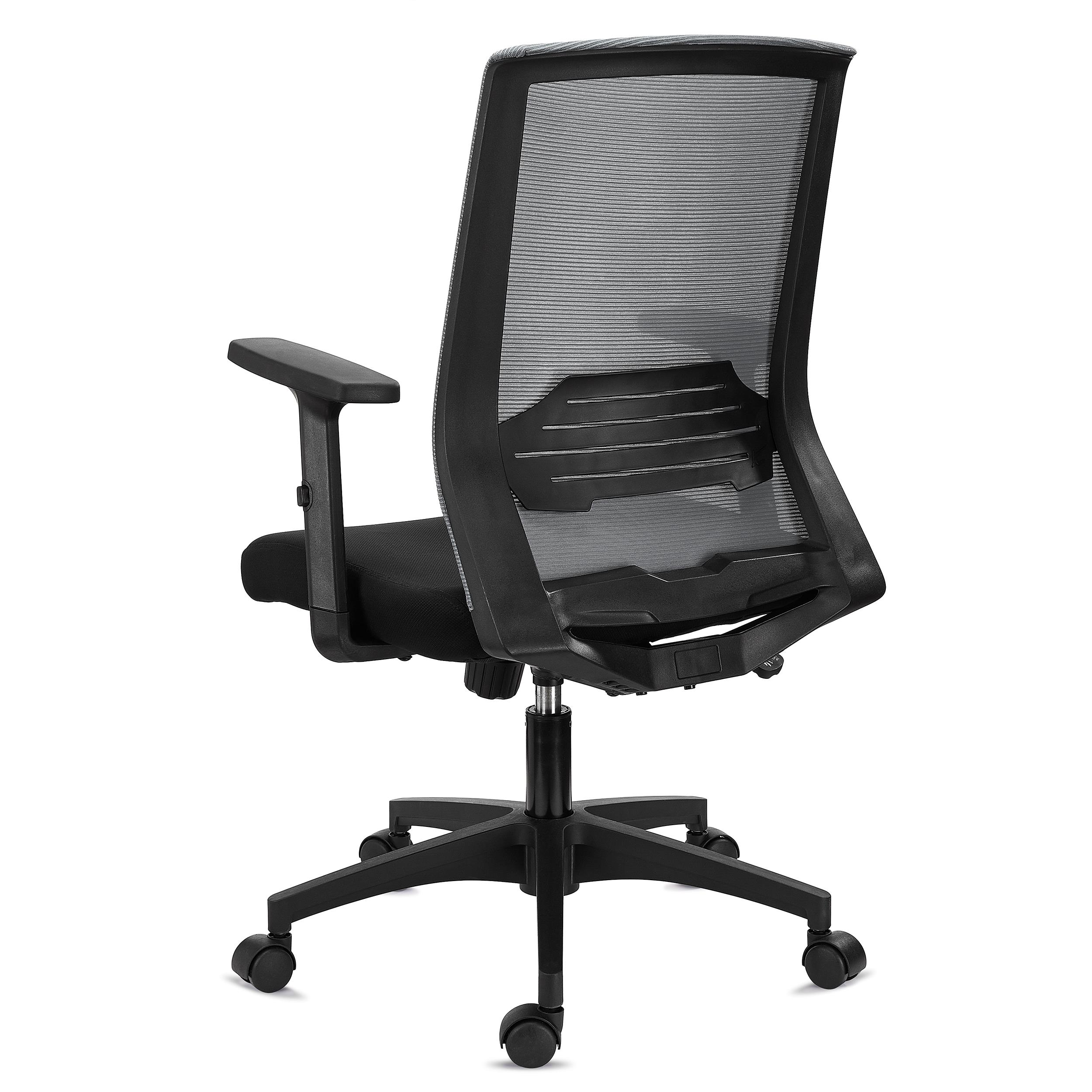 Le dossier se distingue par sa conception très robuste, gage de qualité et de stabilité. Il se caractérise ainsi par ses lignes solides et par ses finitions au style minimaliste, il s’agit d’une combinaison parfaite qui acte le design de style professionnel de l’ensemble. De plus, sa hauteur est supérieure à celle habituelle pour ce type de chaise (53 cm), ce qui vous garantit un meilleur soutien du dos. Le revêtement en maille respirable et le support lombaire modulable favorisent le confort et le maintien du dos, éléments indispensables pour une chaise pensée pour une utilisation intensive.