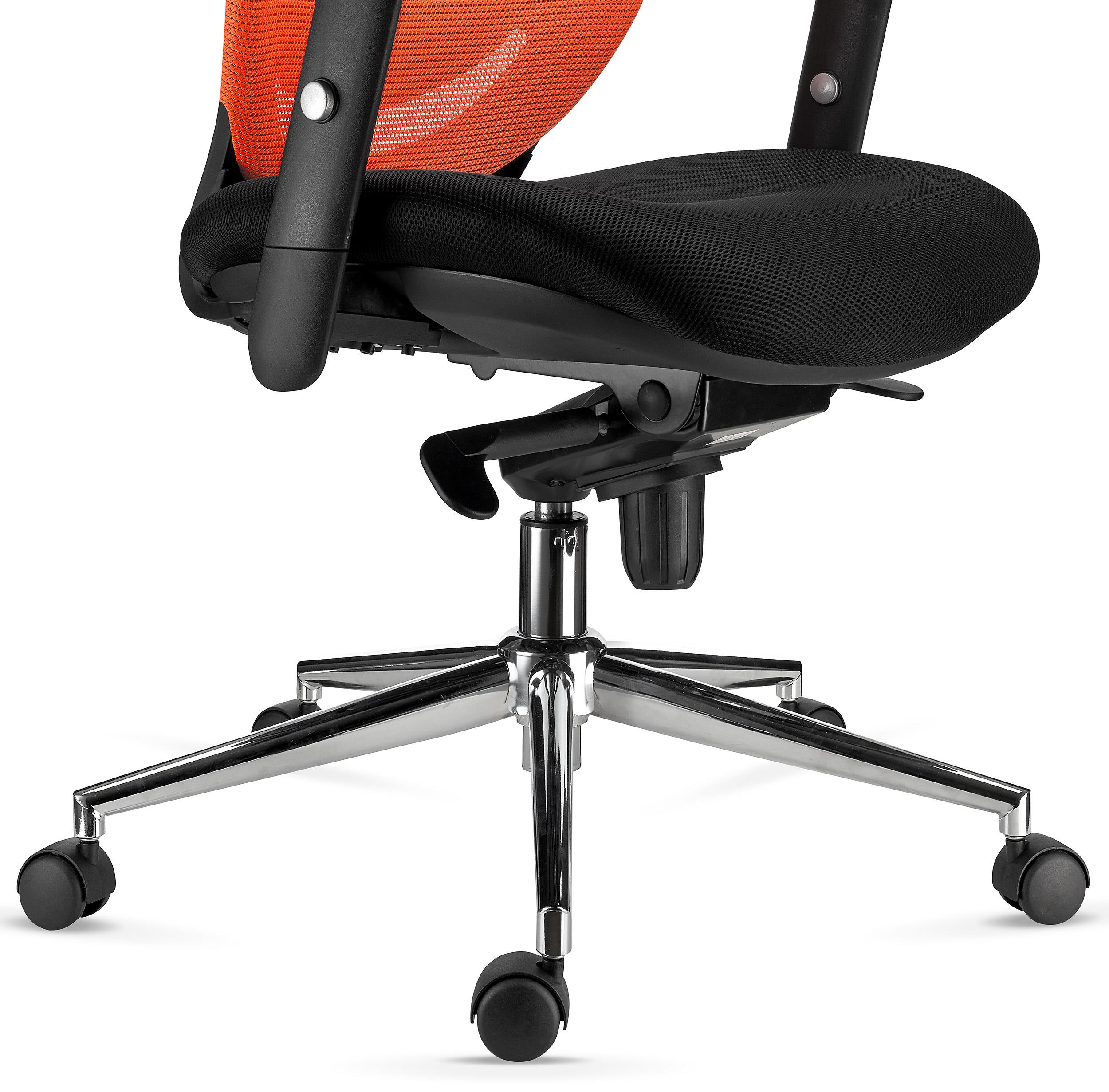 La particularité de ce fauteuil réside dans son dossier : il est en tissu respirant et dispose d’un support lombaire rembourré réglable en profondeur, une caractéristique essentielle qui fait toute la différence d'un point de vue ergonomique. Grace à cela, votre dos bénéficiera d'un soutient optimal et votre posture corporelle sera optimisée.