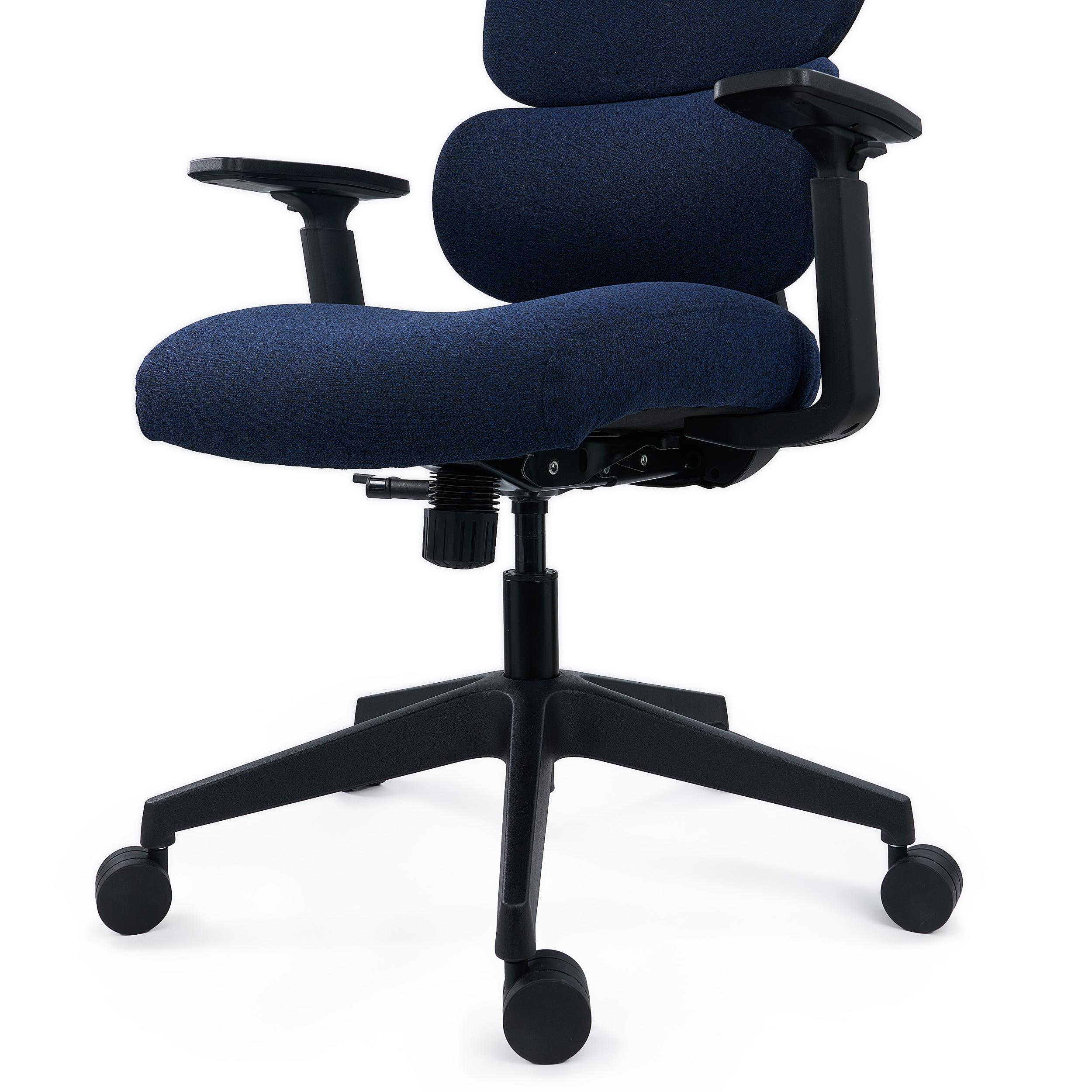 En outre, son ergonomie poussée se traduit notamment par son assise large au rembourrage haute densité. Elle présente des bords arrondis et une finition à l'avant en cascade. Cette conception est particulèrement intéressante puisqu'elle permet de soulager la pression sous les cuisses et les genoux, ce qui est primordial lors d'une utilisation prolongée. Il s'agit par conséquent d'un siège destiné à un usage professionnel intensif de 8 heures par jour, voire d'avantage.