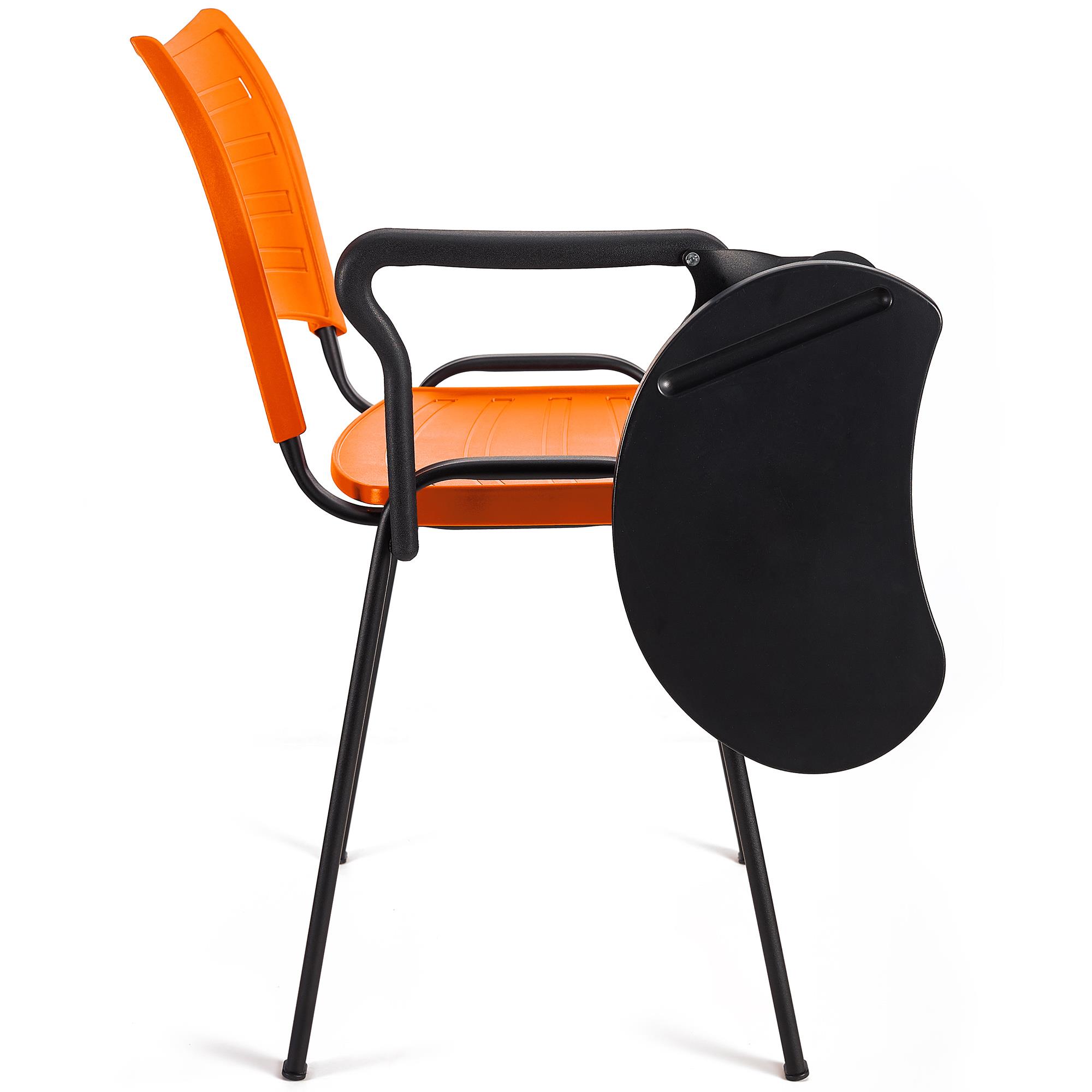 DEMO# Chaise visiteur ELVA AVEC TABLETTE, Empilable et Pratique, Piétement Noir, Orange