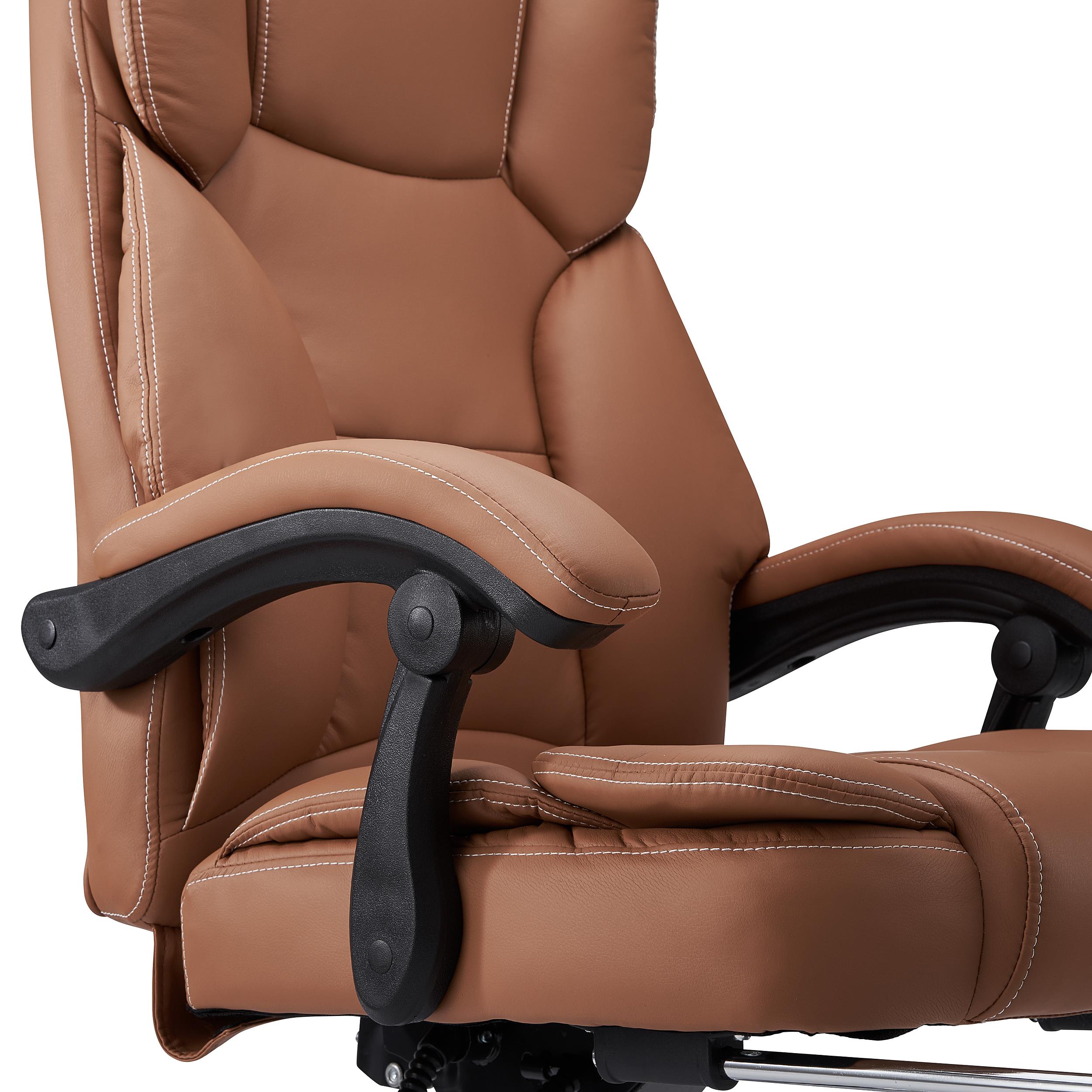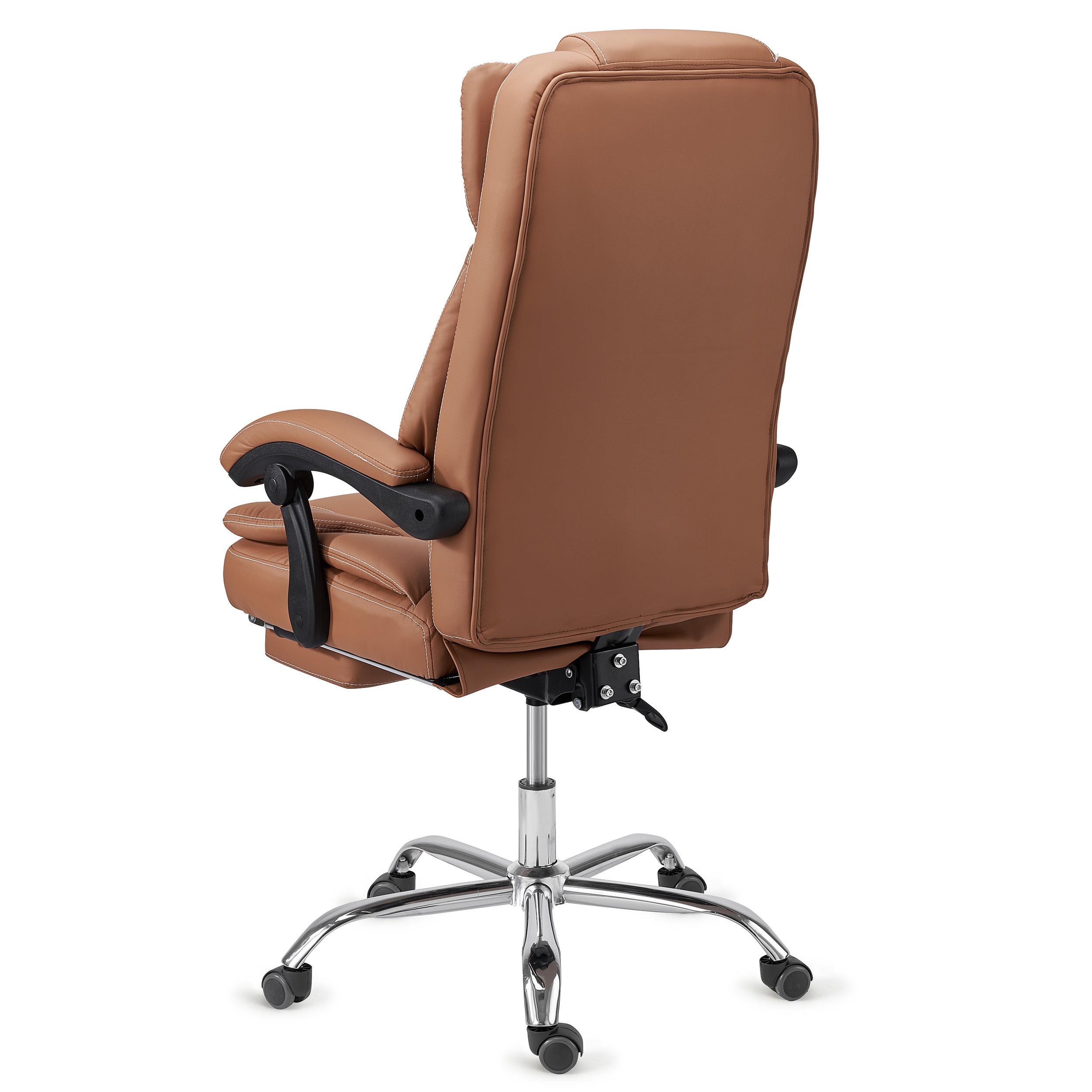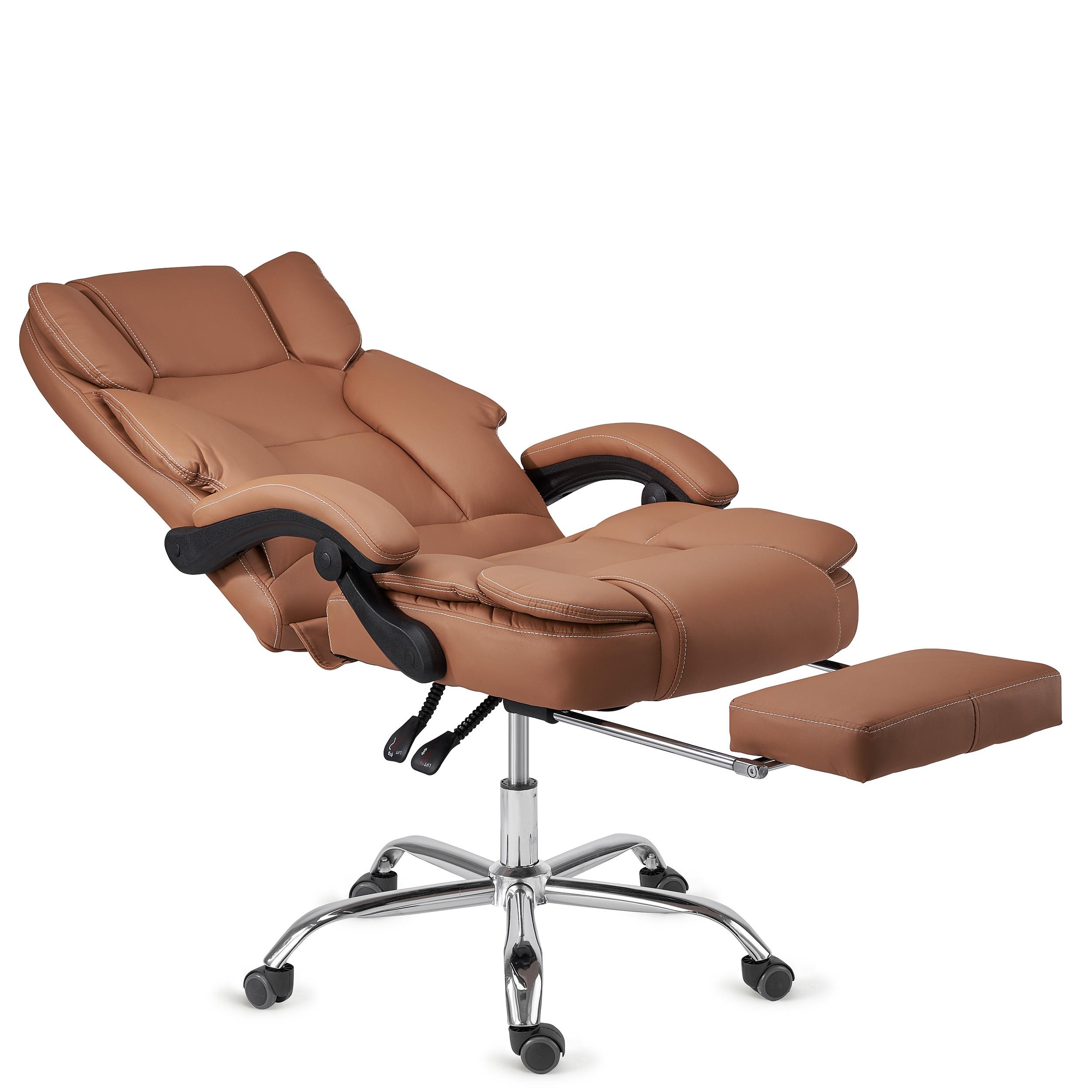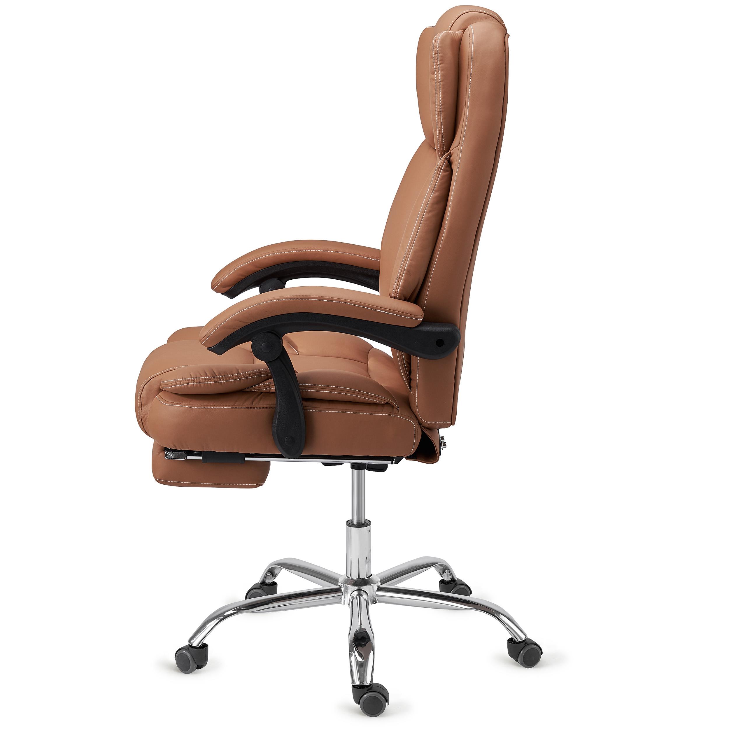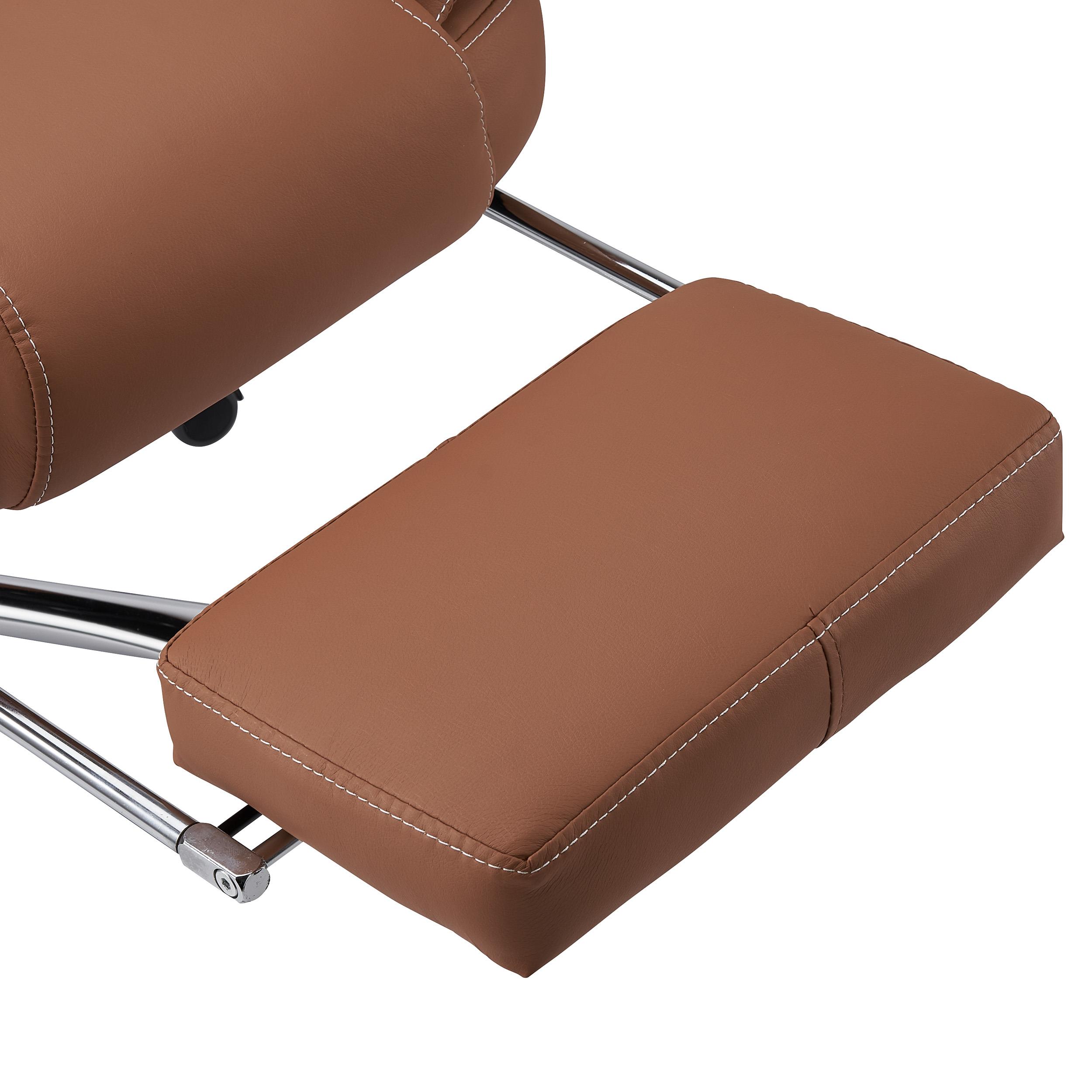 DEMO# Fauteuil de Bureau LINCON, Très Confortable, Ergonomique, Repose Pieds Extensible, Cuir Marron Clair