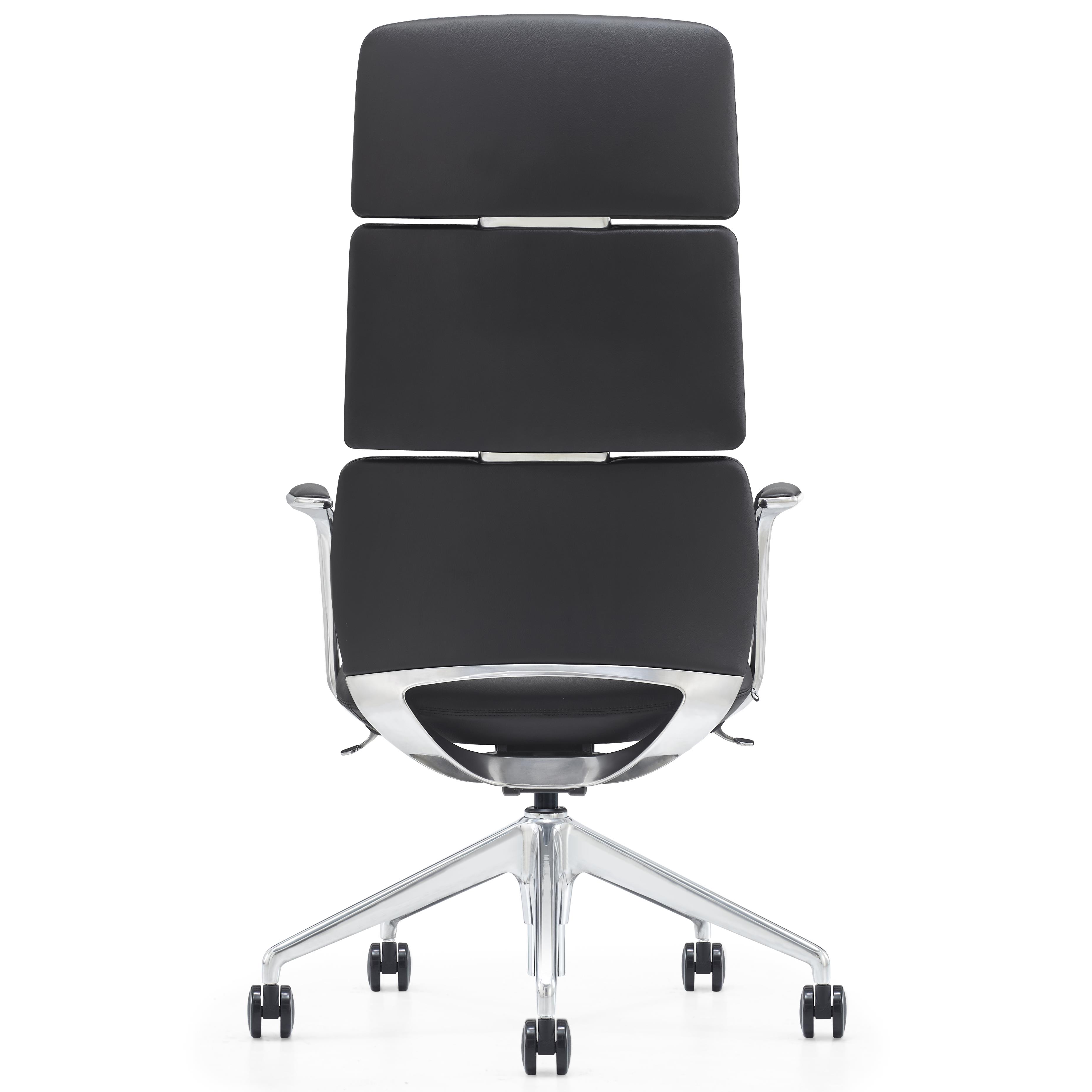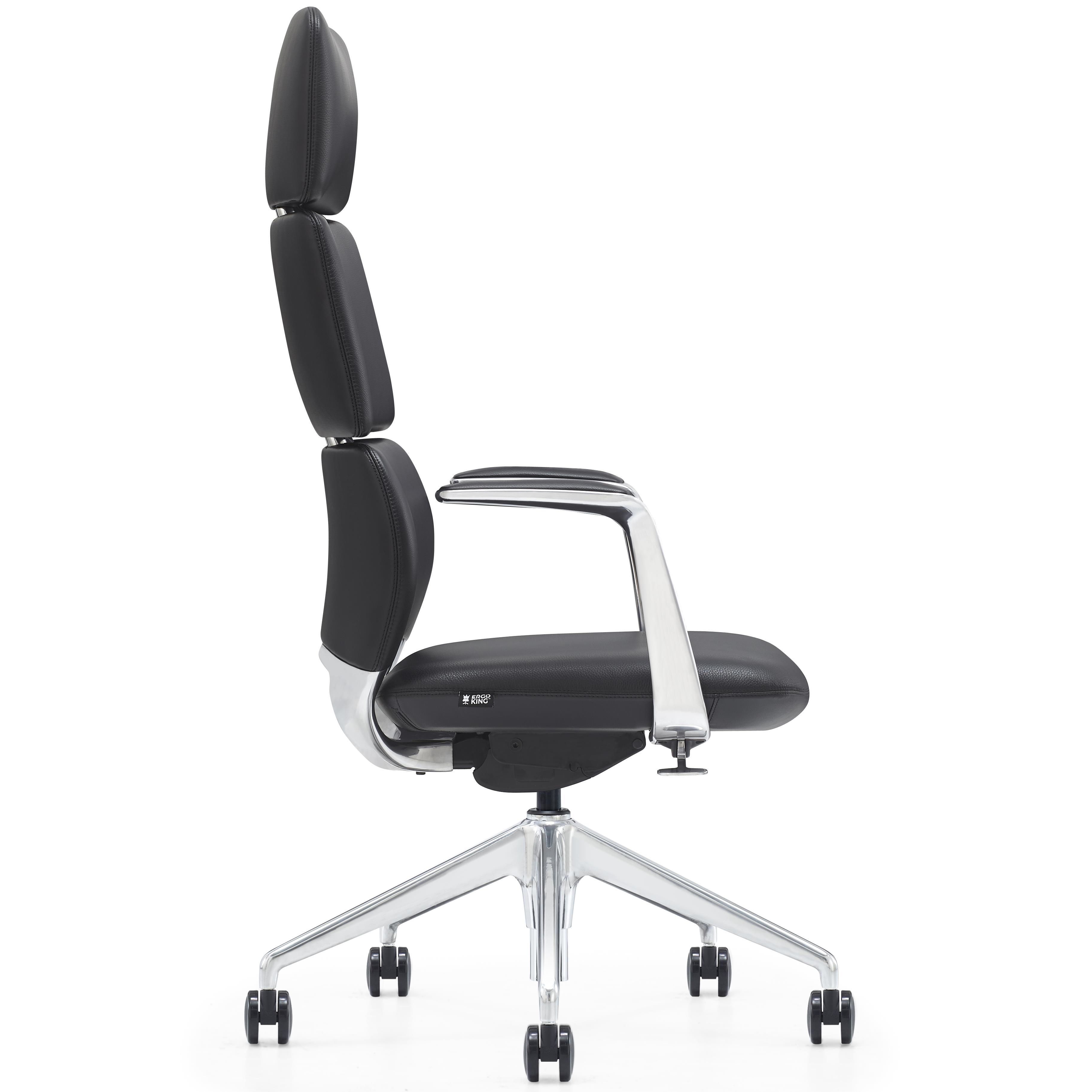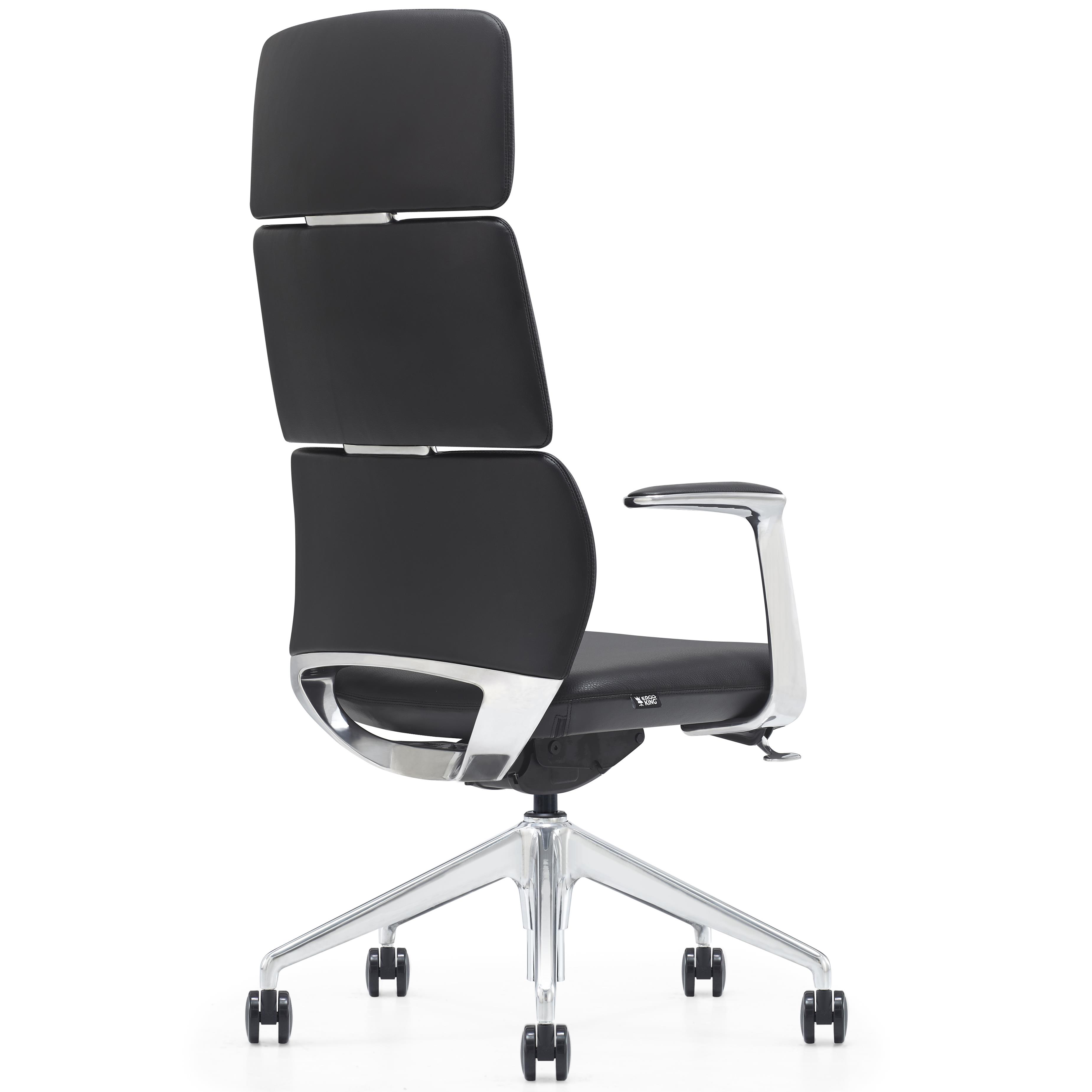 Comme vous le constatez sur les photos, le dossier haut de ce modèle qui intégre l'appui-tête est revêtu de cuir authentique. Cette finition confère à l'ensemble une apparence sophistiquée et assure un confort optimal ; un maintien renforcé de votre dos, vos cervicales. Pour un meilleur soutien de vos bras, les accoudoirs au design épuré sont rembourrés et revêtus de cuir authentique.