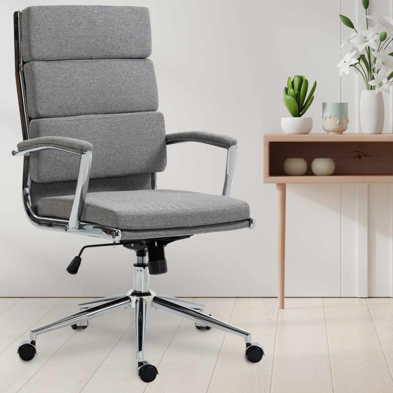 Fauteuil de Bureau TODRA TISSU, Confort et Elegance, Piètement Acier Chromé, Gris
