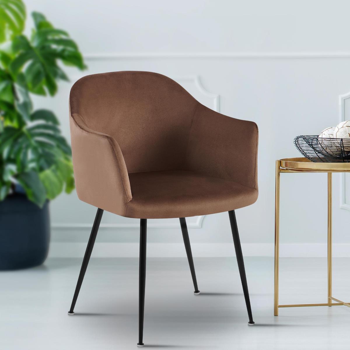 Fauteuil Visiteur VIVIAN, Design Moderne, Grand Confort, en Velours, Marron