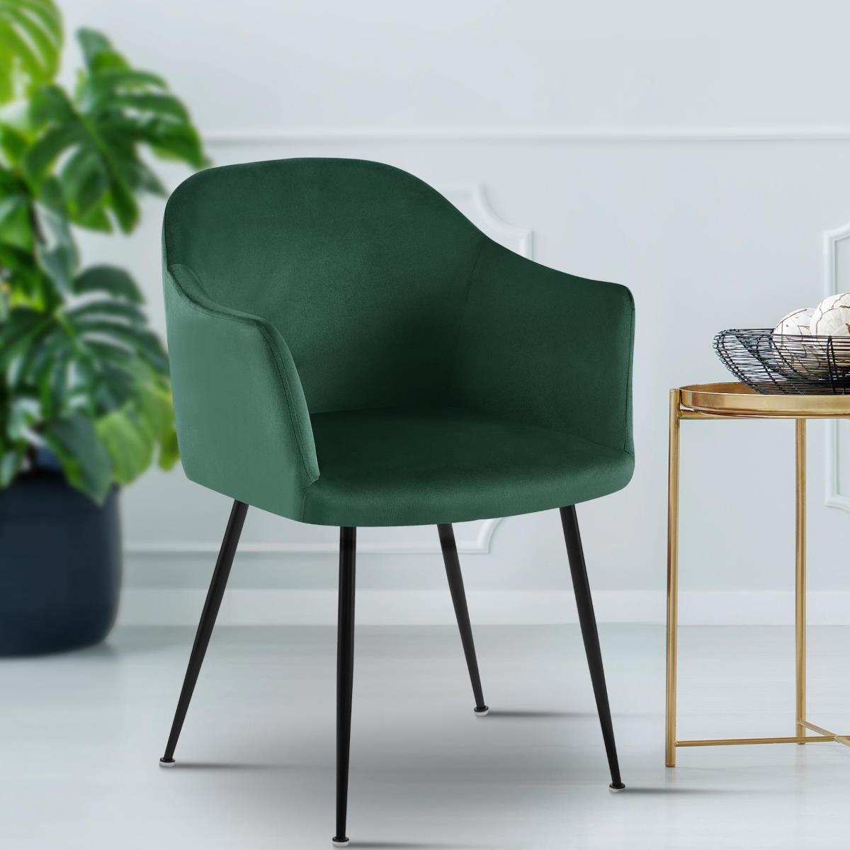 Fauteuil Visiteur VIVIAN, Design Moderne, Grand Confort, en Velours, Vert