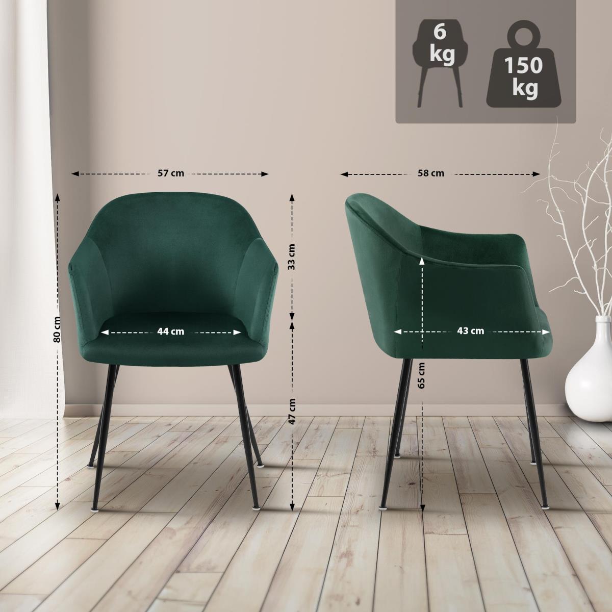 Ce fauteuil est confectionné à partir de matériaux soigneusement sélectionnés, alliant durabilité et élégance. Sa structure robuste en métal noir à quatre pieds assure une grande stabilité et supporte jusqu'à 150 kg . Son revêtement en velours de qualité supérieure offre un toucher doux et agréable, est respirant et se décline dans une élégante palette de couleurs, qui s'adaptera parfaitement à l'espace dans lequel il sera placé.