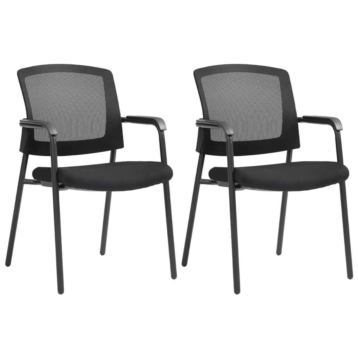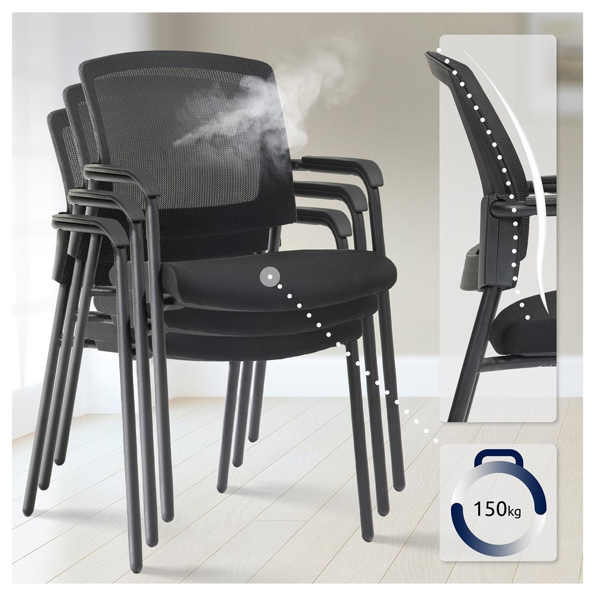Lot de 2 Chaises Visiteur CARTER, Empilables, Avec Accoudoirs, En Tissu et Maille Respirante, Noir