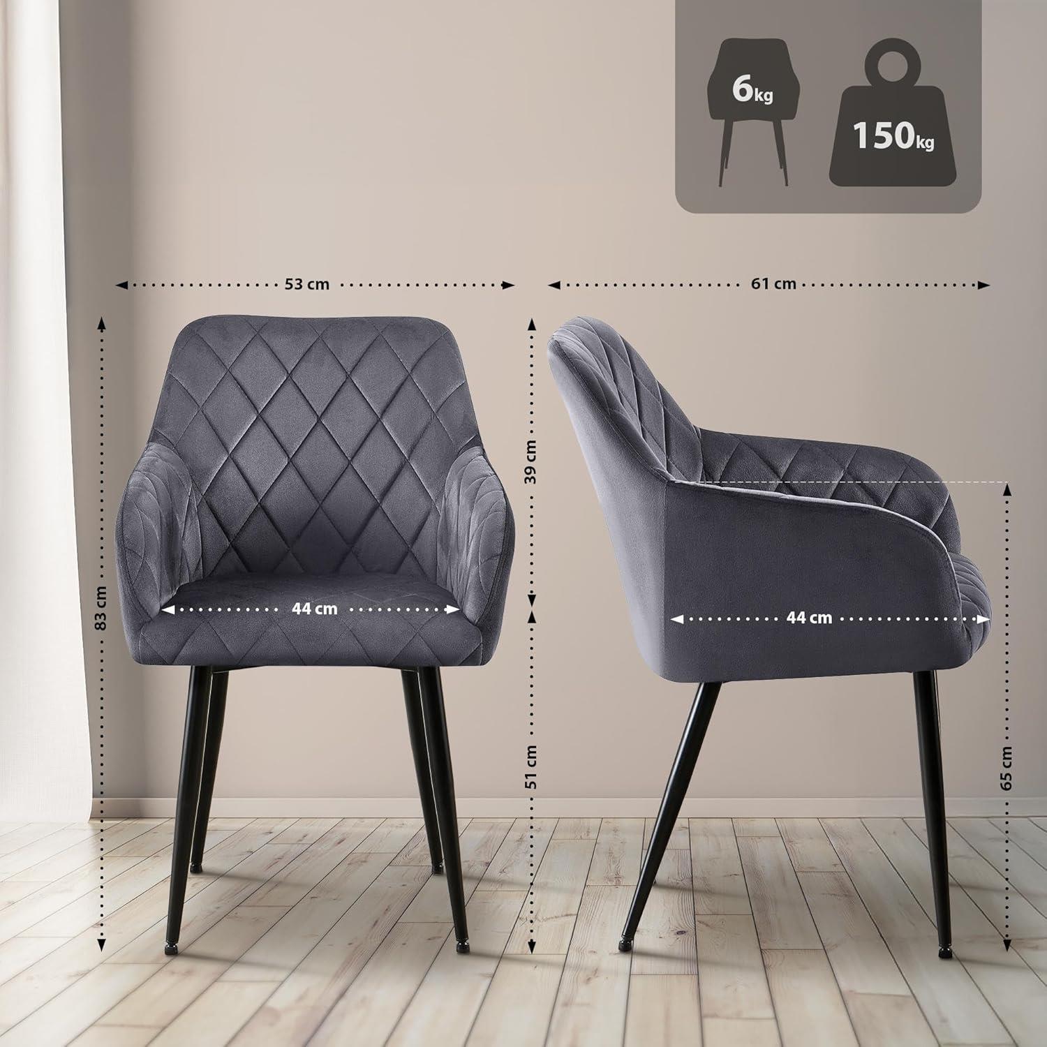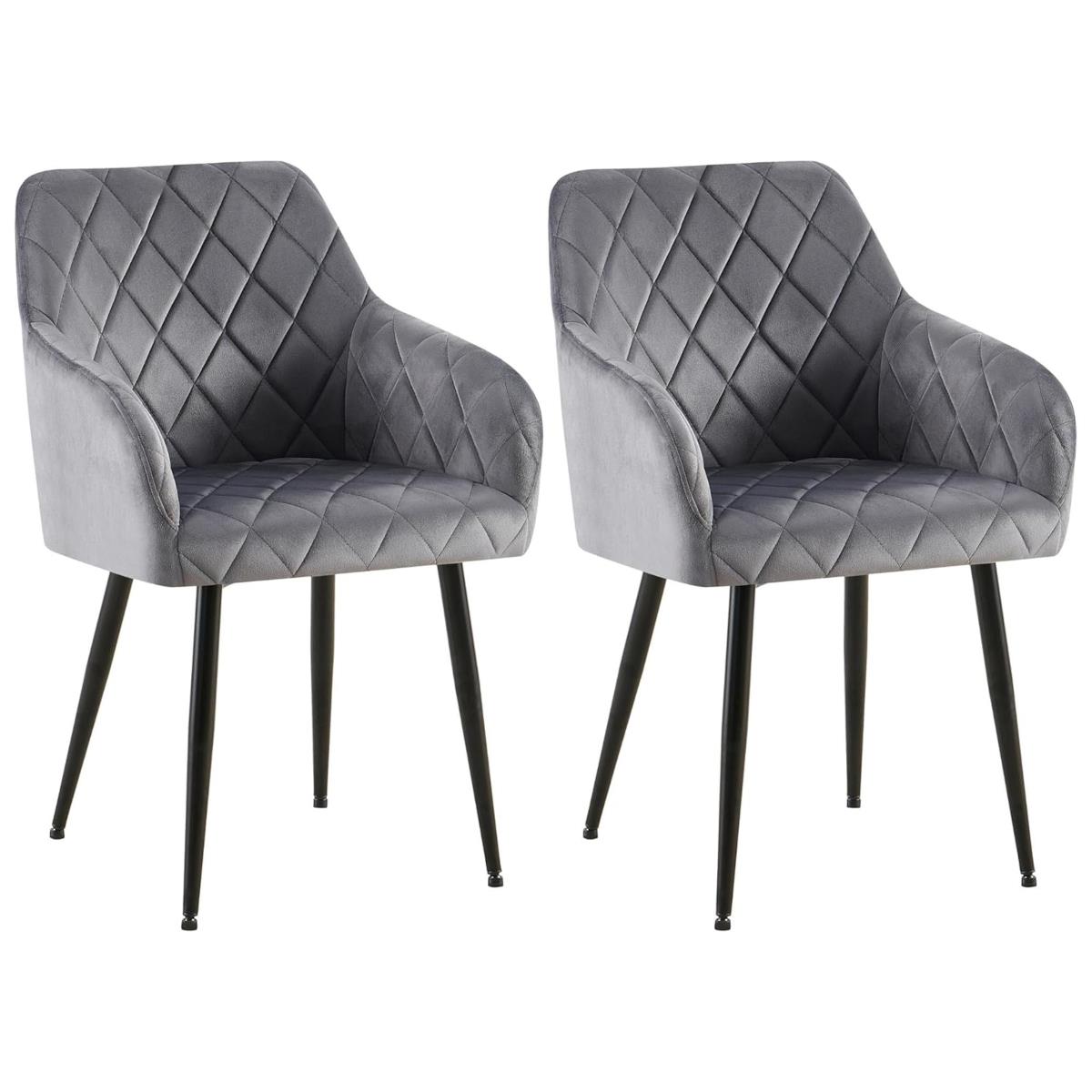 Lot de 2 Chaises Visiteur GLOVER, Elégance et Confort, Pieds Métalliques Noirs, en Velours Gris Foncé