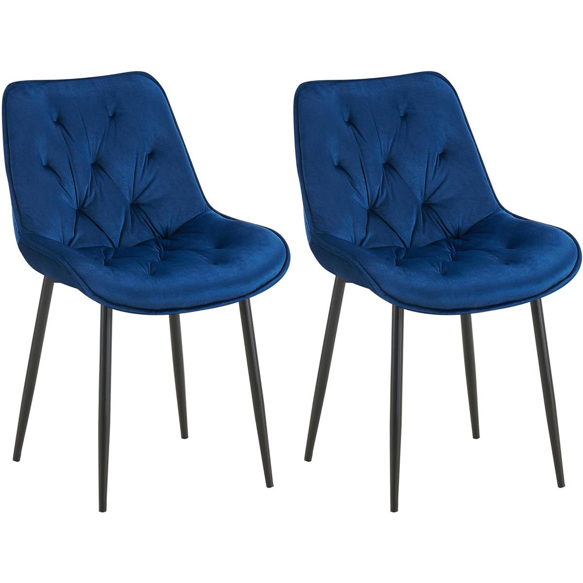 Lot de 2 Chaises visiteur GRACE, Design Confortable et Elégant, Piétement métallique, en Velours Bleu