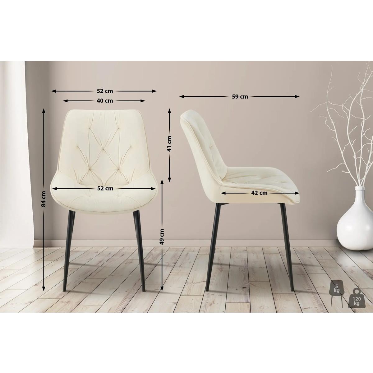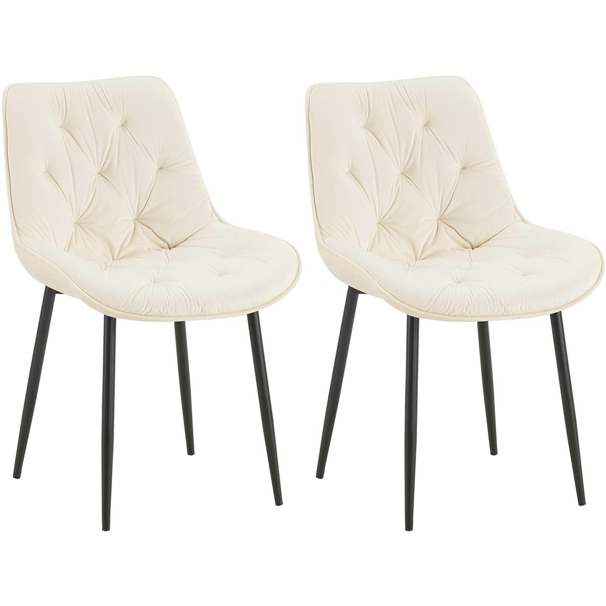 Lot de 2 Chaises visiteur GRACE, Design Confortable et Elégant, Piétement métallique, en Velours Crème