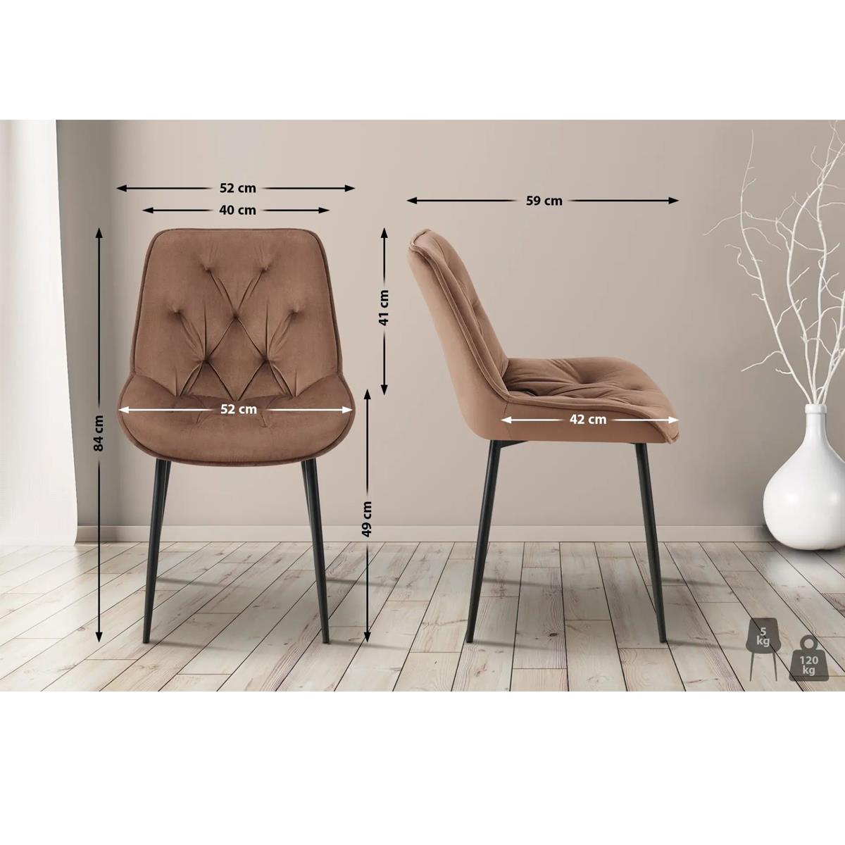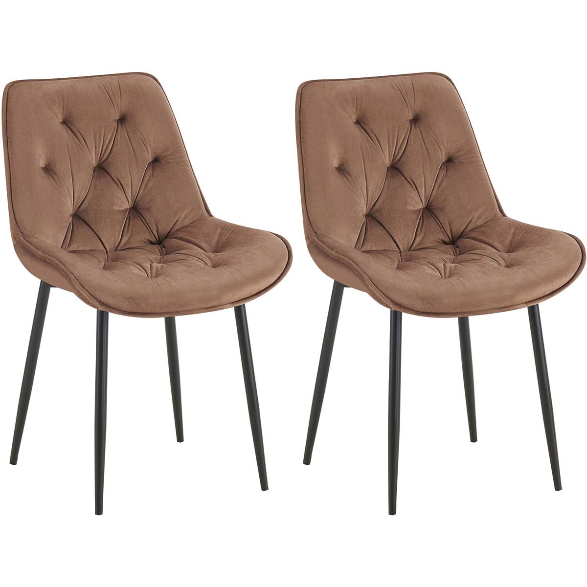 Lot de 2 Chaises visiteur GRACE, Design Confortable et Elégant, Piétement métallique, en Velours Marron