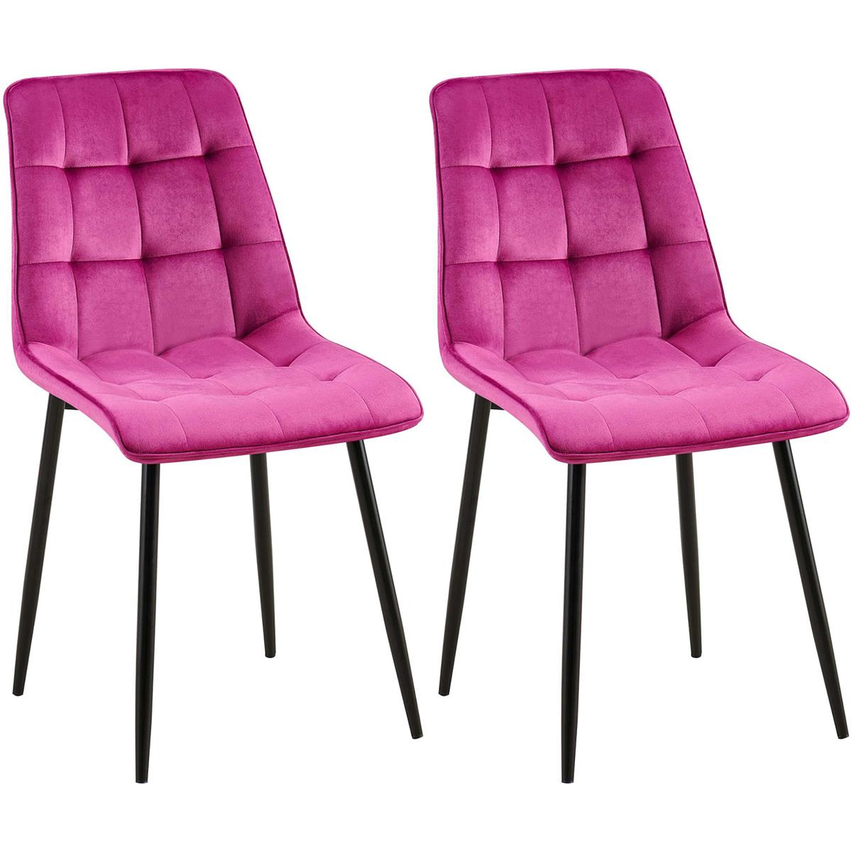 Lot de 2 Chaises Visiteur HALIMA, Rembourrage Épais, Structure Métallique, en Velours, Rose Fuchsia