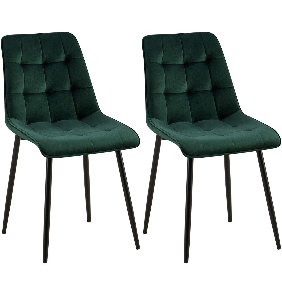 Lot de 2 Chaises Visiteur HALIMA, Rembourrage Épais, Structure Métallique, en Velours, Vert
