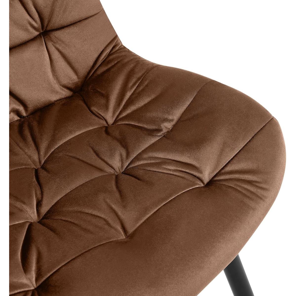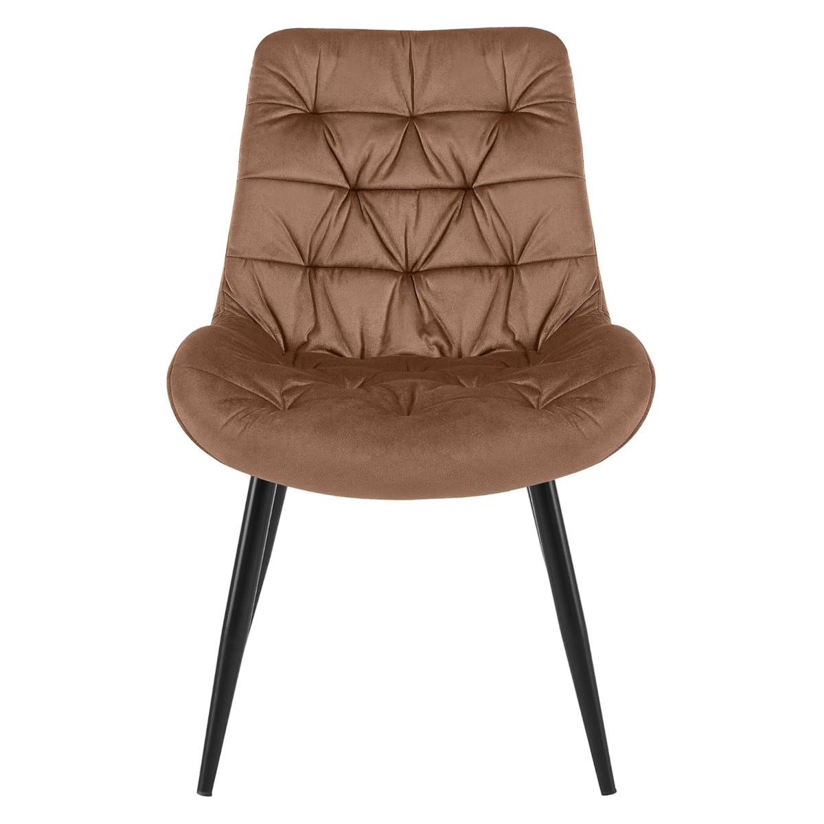 Lot de 2 Chaises visiteur LENNY, Piétement métallique Noir, en Velours, Marron