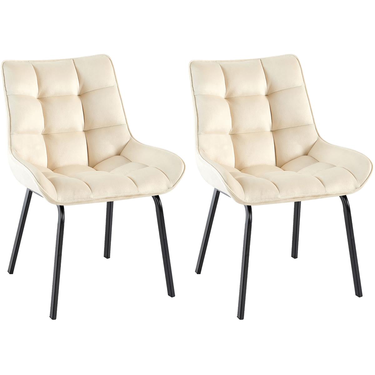 Lot de 2 Chaises visiteur MAMBO, Rembourrage Épais, Piétement métallique, en Velours Crème