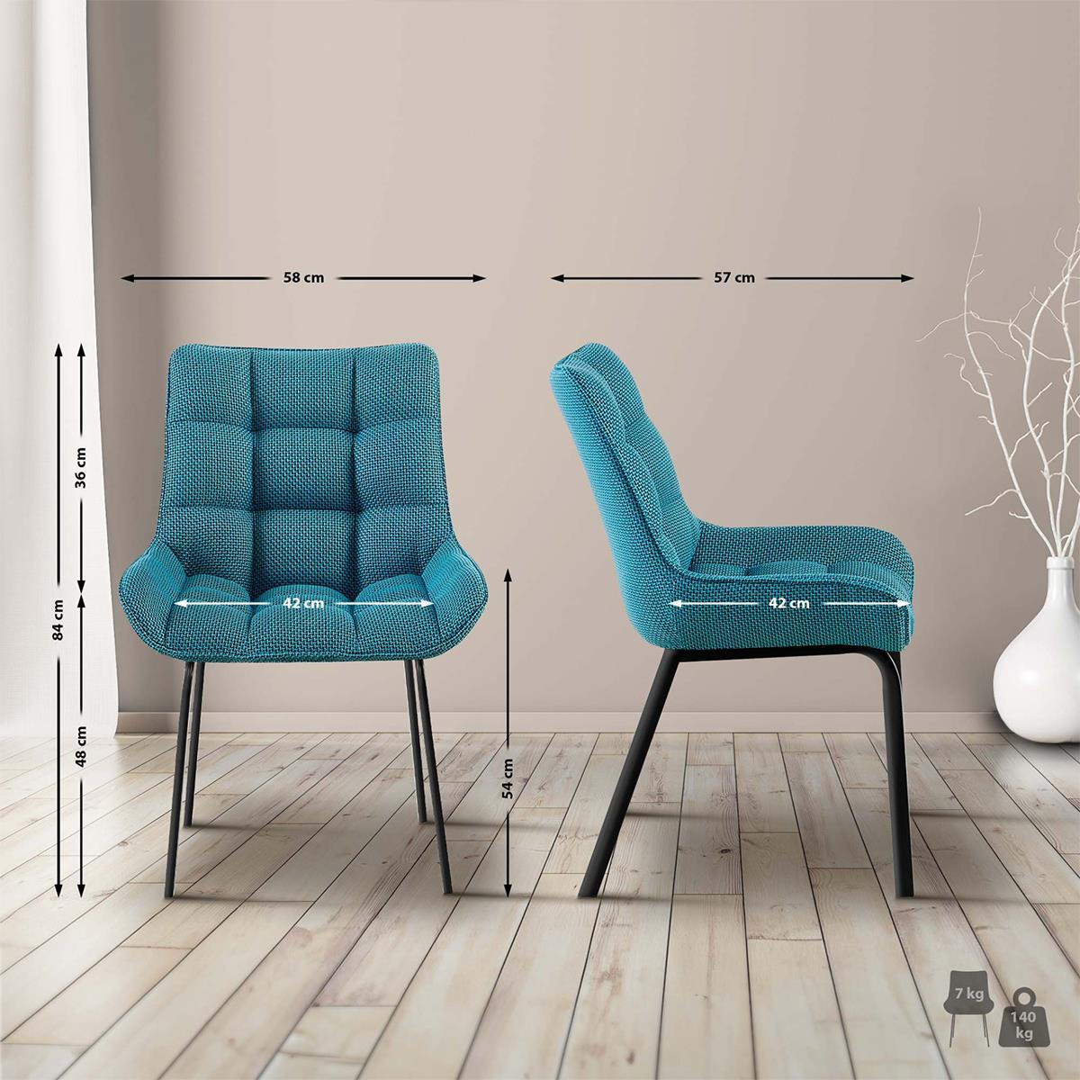 Lot de 2 Chaises visiteur MAMBO TISSU, Rembourrage Épais, Piétement métallique, en Tissu Turquoise