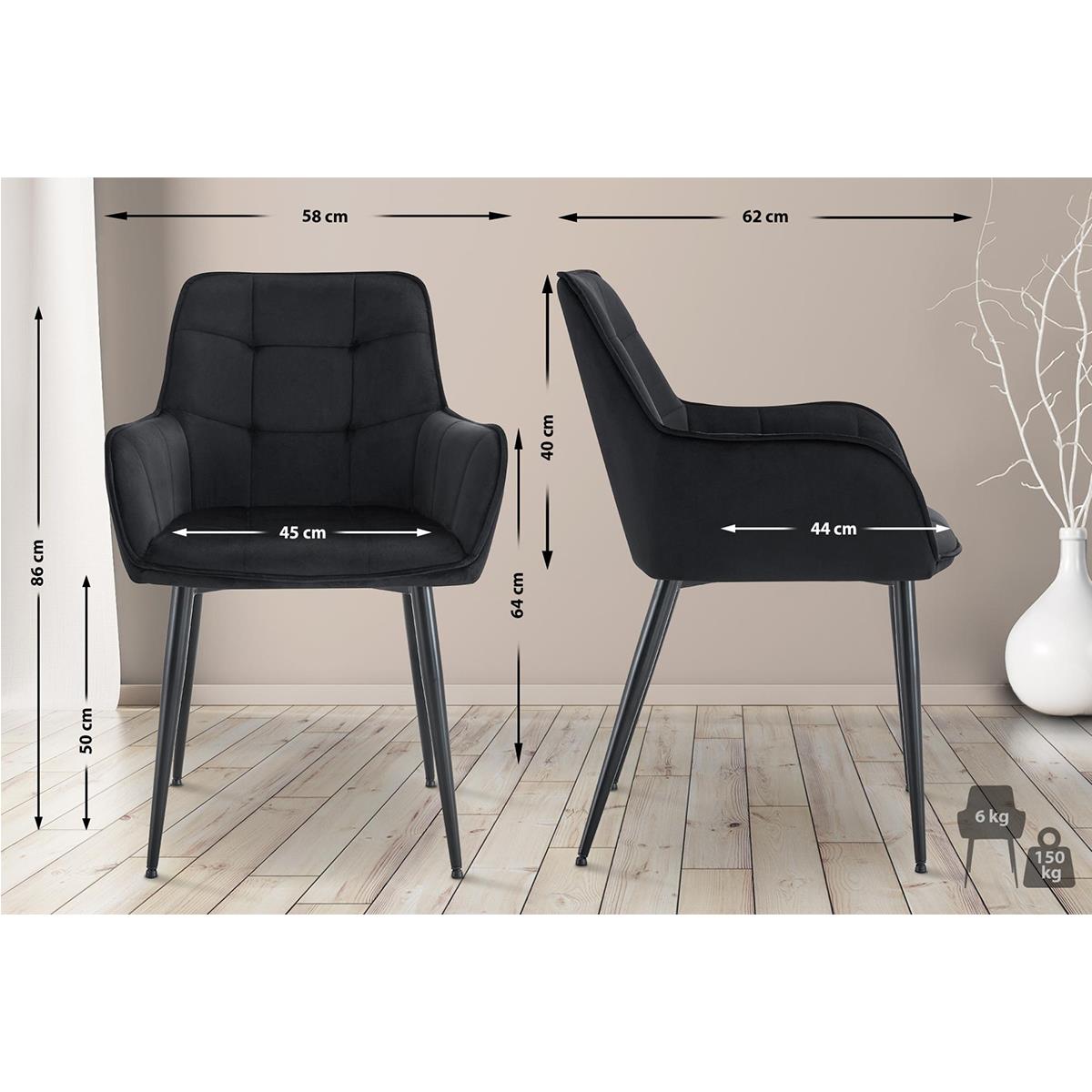 Lot de 2 Chaises Visiteur RUFUS, Design Moderne et Élégant, en Velours, Noir