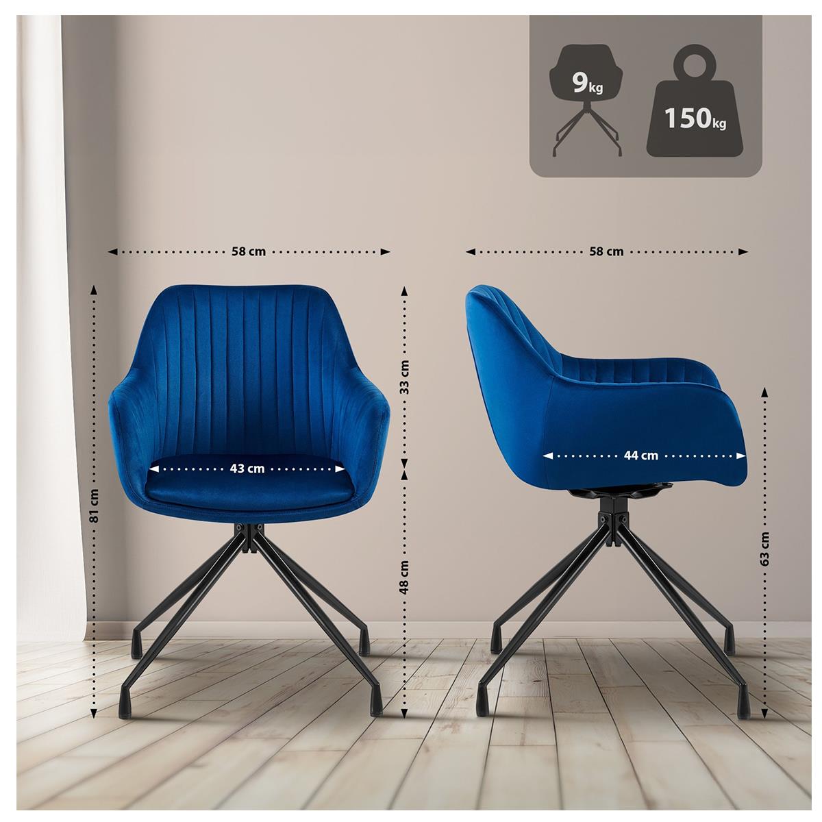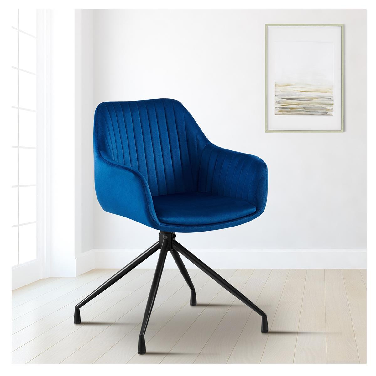 Lot de 2 Chaises Visiteur TANNER, Structure Métallique, Pivotante à 180º, Velours, Bleu