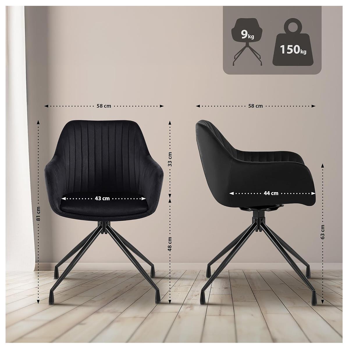 Lot de 2 Chaises Visiteur TANNER, Structure Métallique, Pivotante à 180º, Velours, Noir