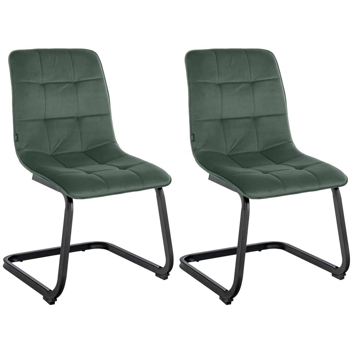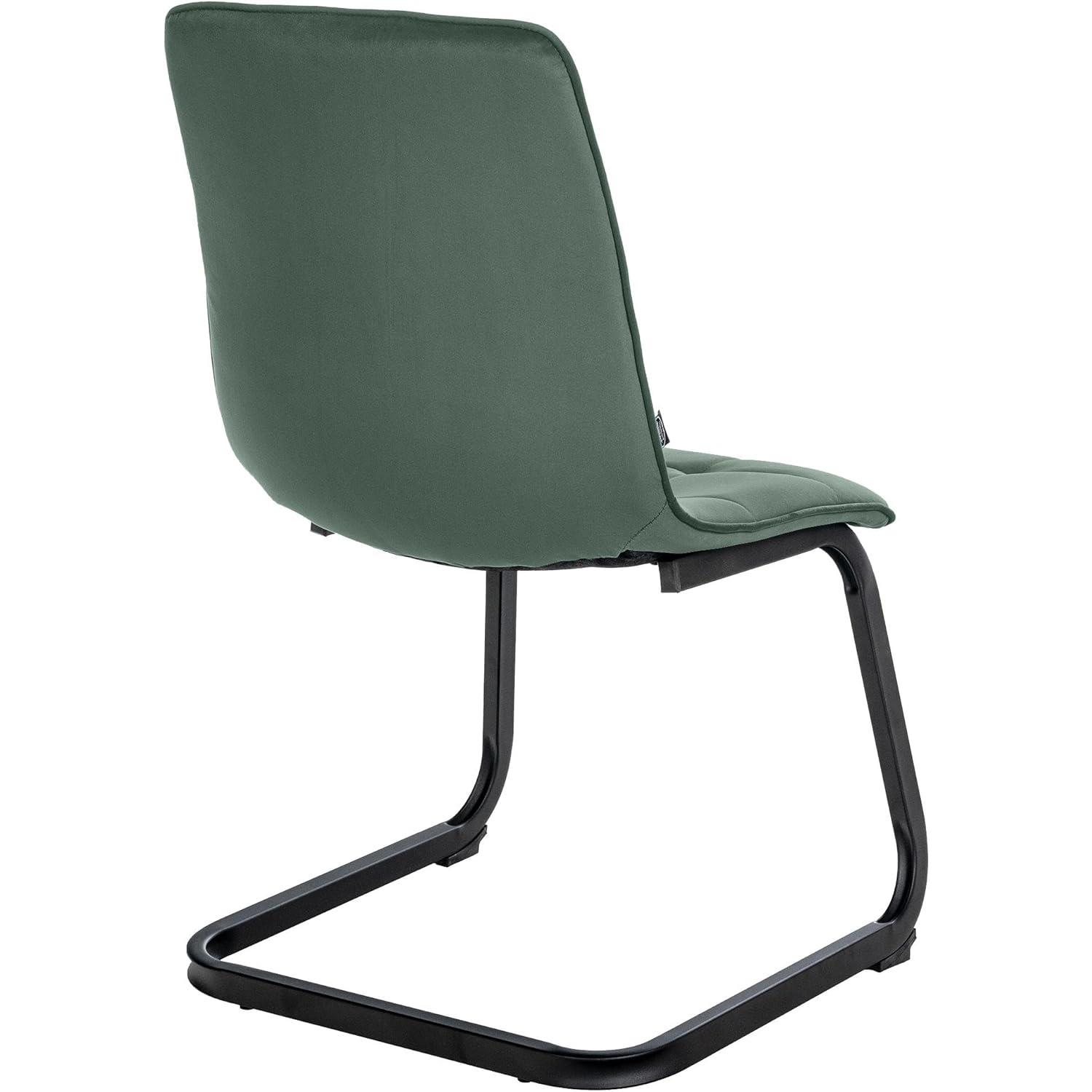 Lot de 2 Chaises Visiteurs ALISA, Rembourrage Épais, Structure Métallique, en Velours, Vert Foncé