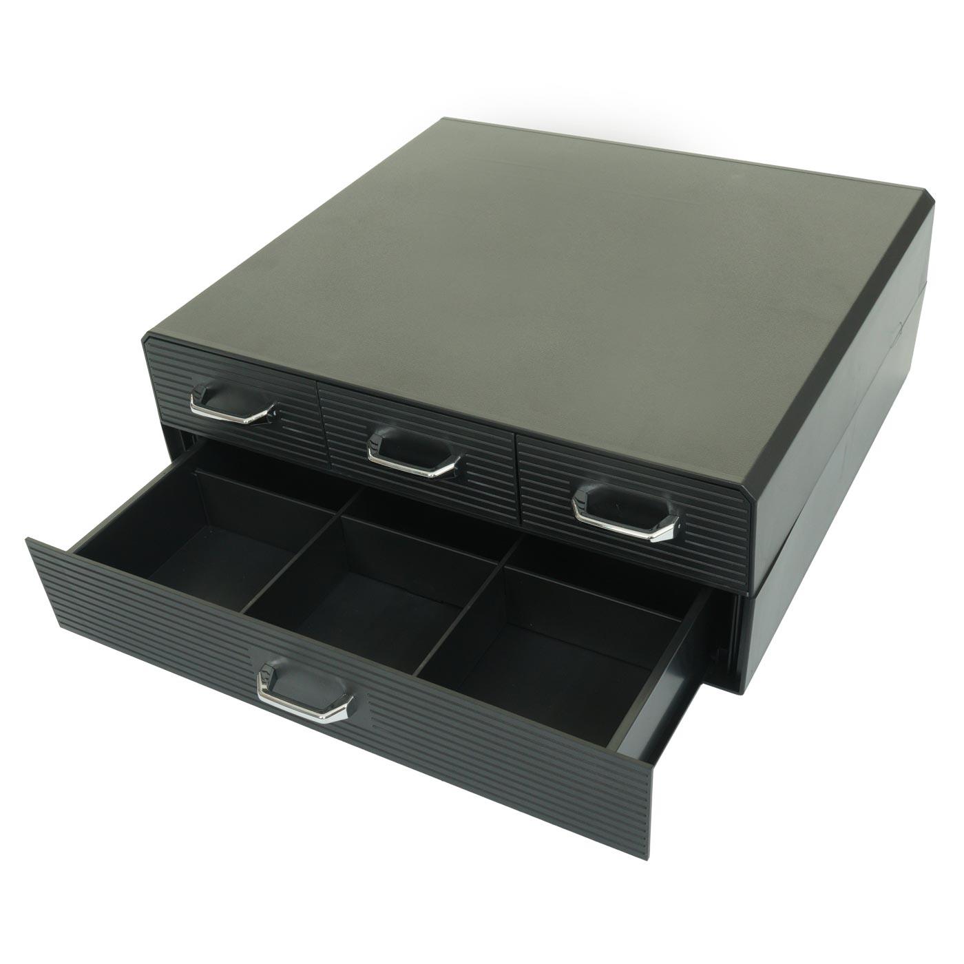 Cet accessoire est indispensable au quotidien, il permet non seulement l'optimisation de votre espace et son maintien en ordre mais il permet aussi d'adopter une bonne posture en plaçant l'écran à hauteur des yeux. Les quatre tiroirs à poignées comportent un total de 15 compartiments, permettant une organisation optimale.