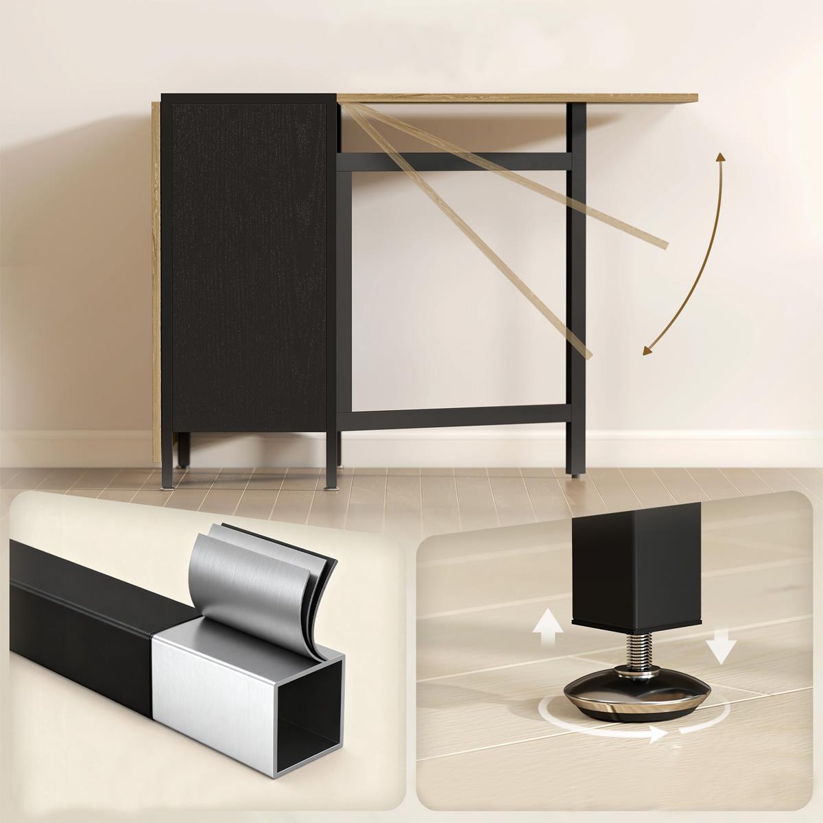 Table de Réunion ALMATY, Métal et Bois, 2 Rallonges Abattables, 3 Configurations, Bois Naturel et Noir